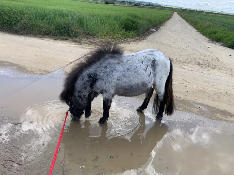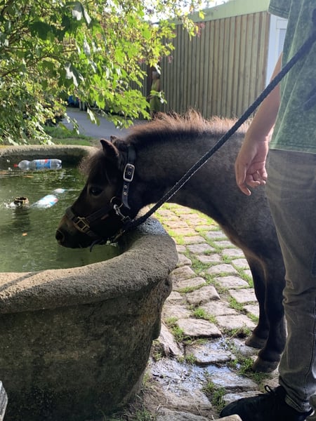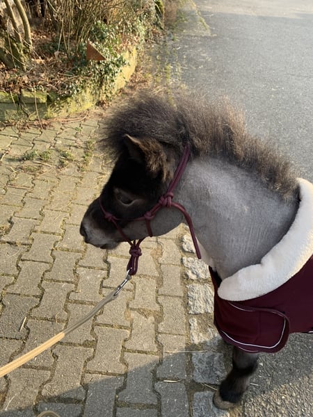 Traumhafter Mini-Shetty Wallach „Krümel“ – Komplett-Set für Therapie & Bodenarbeit Schweren Herzens suche ich aufgrund beruflicher Veränderungen ein neues, wertschätzendes Zuhause für unseren Schalenburgs Graf, liebevoll „Krümel“ genannt. Krümel ist ein wunderschöner Rapp-Roan (Farbwechsler) mit vollen Papieren (roter Pass). Er besticht nicht nur durch seine seltene Farbe, sondern vor allem durch sein extrem freundliches Wesen. Er ist stets neugierig, möchte immer dabei sein und ist beim Kuscheln garantiert der Erste. Eckdaten auf einen Blick: * Rasse: Mini Shetland Pony (Stockmaß ca. 85 cm) * Geschlecht: Wallach (kastriert April 2023) * Geburtsdatum: 04.07.2022 * Abstammung: V: Gerrit B | M: Schalenburgs Gladys * Gesundheit: Regelmäßig entwurmt; geimpft gegen Tetanus, Influenza & Herpes. Charakter & Ausbildung: Krümel wurde gezielt mit Fokus auf den Therapiebereich gefördert. Er besitzt eine unglaubliche Ruhe und Gelassenheit. Er ist altersentsprechend verspielt, lernt jedoch extrem schnell und ist sehr fein in der Kommunikation. * Bodenarbeit: Vertraut mit Freiarbeit, Longieren (Kappzaum, Trense, Knotenhalfter, Longiergurt ) sowie aktuell Doppellonge * Handling: Absolut brav beim Führen, Anbinden, Verladen und beim Hufschmied. Er zwickt oder beißt nicht! * Sozialverhalten: Rangniedrig, wuchs in einer großen Herde auf und ist sehr verträglich. Das "Rundum-Sorglos-Paket" (im Preis enthalten): Krümel bringt sein komplettes, hochwertiges Equipment mit: * Decken: Regendecke, Amigo Regendecke mit abnehmbarem Halsteil(200g), Abschwitzdecke & Abschwitzdecke mit Halsteil. * Arbeit: Hochwertiger Lederkappzaum, Trense mit Gebiss, Fell-Longiergurt, Schabracke, selbstgemachte Langzügel. * Zubehör: Knotenhalfter mit Rope & Kontaktstick, Gamaschen (v/h), 2 Sets Bandagen (schwarz/weiß), Halfter. Preis: 2.800 € (Verhandlungsbasis inkl. komplettem Zubehör) Krümel ist ein absoluter Herzensbrecher, der sofort in den Therapiebereich oder als Familienpony durchstarten kann. Wir freuen uns auf ernstgemeinte Anfragen und ein persönliches Kennenlernen! Aktueller Standort in 75015 Bretten Anfragen von Händler werden nicht beantwortet!
