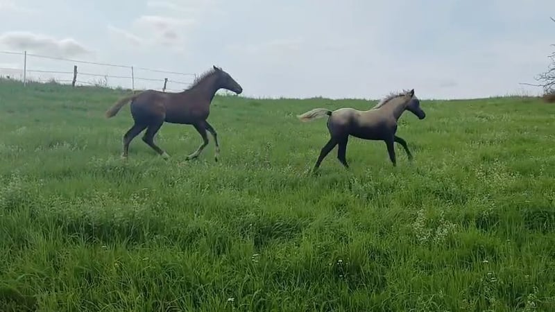 Jasmin demonstrates a very expansive flat-footed walk with a high-frequency, relaxed, and flowing rhythm (see video of head nodding). Her canter is highly elevated and completely pass-free. She combines top American World Champion bloodlines: Southern Playboy, Jester’s Charming Legend, and Gunslingers Velvet Vegas. Jasmin is a full sister to the highest-rated foal of the 2021 foal crop in the European Missouri Foxtrotter breeding association. She exhibits the correct conformation of her full sister. In the fall, she can be weaned and moved to her new home with American registration and the purple equine passport of the European Missouri Foxtrotter breeding association. More about our breeding concept, upbringing, and training of our horses can be found at https://www.taunus-foxtrotter-ranch.net/ and https://www.facebook.com/.