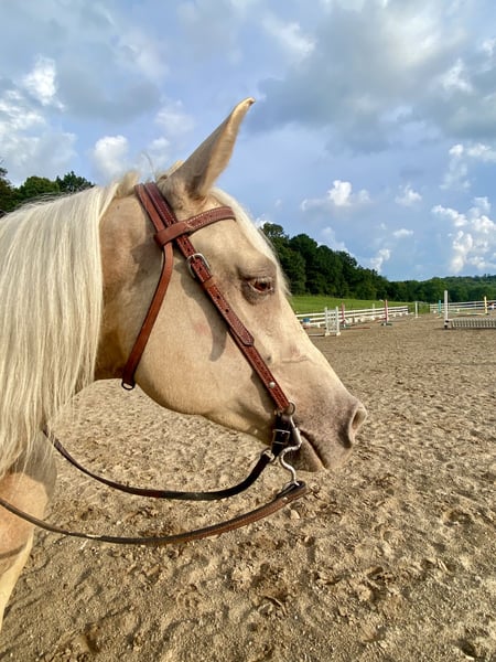 Zarejestrowany Missouri Foxtrotter. Serce ze złota. Spokojny temperament. Nie jest nerwowa. Bezpieczna na drodze. Ładnie wsiada do przyczepy i na lawetę. Gdy chodzi o karmienie, jest dominującą klaczą. Ładnie stoi dla kowala. Nieuzbrojona (na podkówki). Aktualnie zaszczepiona, odrobaczona i z zębami u dentysty. Przeważnie używana do jazdy trailowej i na pokazach gier terenowych. Na szlaku jest bardzo przyjemna. Potrafi nieść flagę. Mój 7-letni syn jeździł na niej w ujeżdżeniu, pokonując przeszkody typu cross rails.