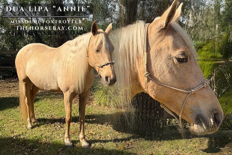 Dua Lipa a.k.a. Annie Beauty and brains. Dua is sensitive and smart. She loves to please. She’s easy to ride. Super smooth gaits. Not for beginner just because she is sensitive. She doesn’t have a mean bone in her body. Eager to learn new things. She rides in a hackamore but will also go in a snaffle. She is forward-moving but comes right back down off her seat. I would say her energy level is about a four or a five. She’s very inquisitive and likes to explore. She prefers to be turned out. She gets bored and antsy locked up in a stall all day. She’s a social butterfly. Very sweet and kind. She has a ton of miles on the Missouri trail. Not just Florida miles. The only reason she is for sale is that I’m switching breeds.