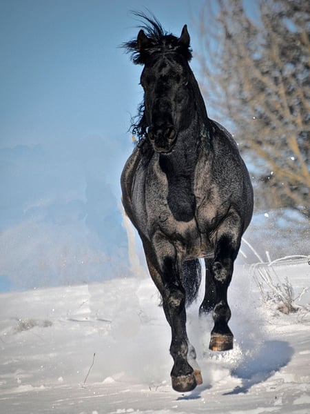 YOU AIN'T RIDING UNTIL YOU'RE RIDING A HANCOCK .... this is an open secret among US ranchers. In the USA they are bred for the "every day ranch work" and for competitions like Team Roping and Ranch Versatility. In Europe extremely rare bloodline, which stands for endurance, robustness, nerve strength, extremely strong bones and hard hooves. Our MJM Saltys Blue Ezra is a worthy representative of this bloodline. We imported it from the USA to make these original features of a quarter available again in German-speaking countries. As the previous offspring shows, it is also excellently suited for strengthening the foundation and nerves of performance-drawn quarter-stuts ;-) . Its stock size is 156 cm, it is homozygous for Black and for Roan. Of course, it is Five Panel n/n, as well as MYH1 n/n. Covered by fresh, refrigerated and frozen seeds. Cover tax: 950,00 Euro + 100 Euro additional costs of the deck station per seed order + approx. 35 Euro shipping (shipping price is only valid for refrigerated seeds!). More information on our website or at FB under his name.