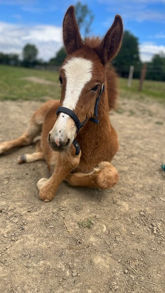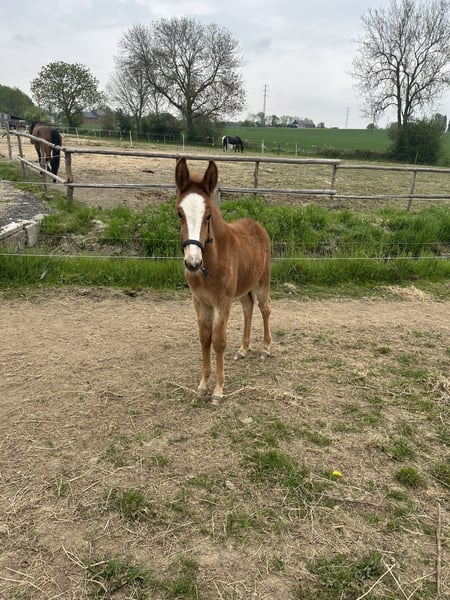 Bonjour, Je vends, à contre cœur, mon mulet prenant 4 ans en février 2026. En août 2021 j'ai acheté ma jument PRE. Celle-ci était en Belgique depuis deux mois seulement. J'ai appris, en février, quelques jours avant la naissance, qu'elle était pleine. Lorsque Pablo est né nous avons constaté qu'il s'agissait d'un mulet. Nous avons tout de suite accroché avec lui, il a un caractère particulier et bien à lui, très attachant ! Nous avons alors voulu le garder. Cependant, la vie nous oblige maintenant à voir les choses autrement, nous avons eu deux enfants très rapprochés et n'avons malheureusement plus assez de temps pour lui... Il vit au pré toute l'année avec sa maman (ils ont été séparés 6 mois pour le sevrage lorsqu'il avait 6 mois). Pablo est extrement gentil mais pas debourré. Il est très proche de l'homme et adore être brossé. L'important pour nous est qu'il parte dans une bonne famille.