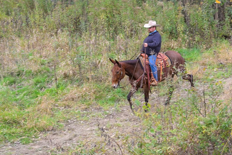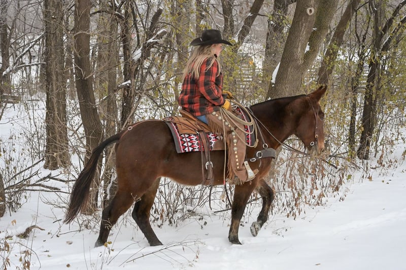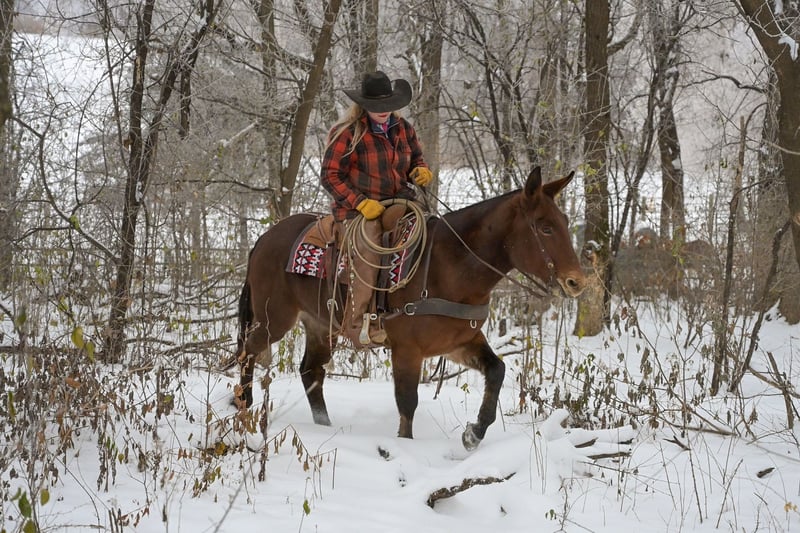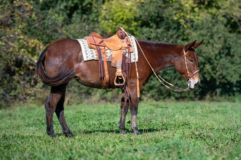 🎄𝐓𝐇𝐄 𝑯𝒐𝒍𝒊𝒅𝒂𝒚 𝐂𝐋𝐀𝐒𝐒𝐈𝐂🎄 Happening now thru MONDAY | DECEMBER 15th - Available EXCLUSIVELY on HorseBid's website! For more details and to register visit: www.Horsebid.com CONSIGNOR CONTACT: Rafter D Mules 651-303-7056 LOCATION: Hastings, MN BREED: Mule REGISTERED: No REGISTERED NAME: Rosetta COLOR: Bay Roan HEIGHT: 15.1 AGE: 11 GENDER: Molly Mule It is easy to say that Rosetta has become one of our favorite mules on the place! Although she captures your attention with her beauty, she keeps it with how well she rides and how incredible she performs. She earned a living for many years working at the OKC West sale, where she gained all the maturity and experience you could ask for! Rosetta is phenomenal to gather and sort cattle on. She has seen more cattle than most cowboys could even think of bragging about. I have personally roped and doctored many head with her, and she will not let you down. She will side pass to any gate and watch any cow. We have hauled her to South Dakota to ride trails, as well as gather and sort cattle on her. She is fantastic to ride and never slacks off on any job. She definitely enjoys trail riding the more than anything and covering open country. Rosetta truly takes care of her rider and has experience on many different terrains. She would be best suited for an intermediate to advanced rider, but a child that knows how to ride would get along great with her! She will stand at a mounting block or by a log on the trail to be mounted. Rosetta gracefully steps over logs and easily walks through water crossings. She is not bothered by mud, snow, or anything you could come ever come cross. We are so excited to offer her publicly! Rosetta is easy to catch, willingly picks up her feet with ease, stands quietly when being saddled, is not ear shy and is always easy to bridle. We have ridden her a lot of miles on the trails and are confident that she will be the apple of anyone's eye. You will absolutely love Rosetta and could honestly do any job with her. If you are looking for a mule to take out on the trails, ride through your cattle, or simply enjoy with your family...look no further. Rosetta checks every box that we could ask her to! If you have any questions or would like to meet Rosetta prior to the auction ending; contact Dillon at 651-303-7056. We look forward to pairing Rosetta with her forever family!