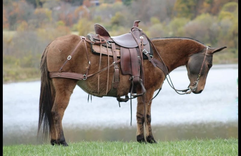 "AVAILABLE ON ONLINE HORSE AUCTION AT www DOT MagicHorseAuction DOT com BIDDING OPEN NOW thru TUESDAY | November 25TH! - BUY IT NOW AVAILABLE! *Final price will be determined on auction site* CONSIGNOR CONTACT INFO: Equestrian Dreams Sam Stoltzfus 814-810-7918 LOCATION: Rebersburg, PA "🌟🌟 Peanut 🌟🌟 Wow! What a pretty mule! Peanut is not your typical mule, this girl loves attention and will be waiting for you in the morning, she will let you rub her all over and is not touchy at all around her ears, she loves to be groomed and rubbed on , Peanut is well broke broke to ride and has a Smooth walk-trot-canter that is very easy to sit on , absolutely no buck or rear with Peanut and she loves to trail ride and has been hauled to state parks for trail rides and also been to fun shows , she loads and hauls great! She has been ridden around the farm and is not spooky to farm equipment or loud traffic Over the past year, Peanut has been ridden by both adults and children. She has experience in Ranch, Halter, and Contest classes, and with more finishing, she has the potential to be a high-end performance or show mule. She rides out alone or in a group, has been harnessed, and is broke to a pack saddle. Peanut is eager to please and a quick learner. Peanut sells 100% sound and healthy and requires no maintenance, she can be barefoot or have shoes she stands well for the farrier or vet She is up-to-date on farrier and dewormer and has a current coggins and health certificate If You have any questions please feel free to call Sam 814-810-7918 We are happy to assist arranging transportation anywhere in the US