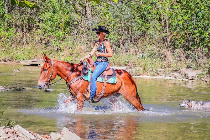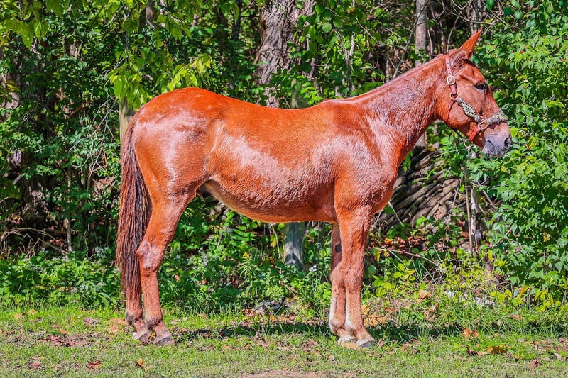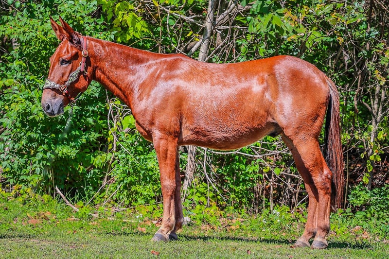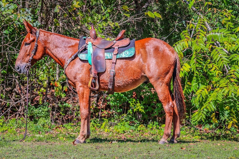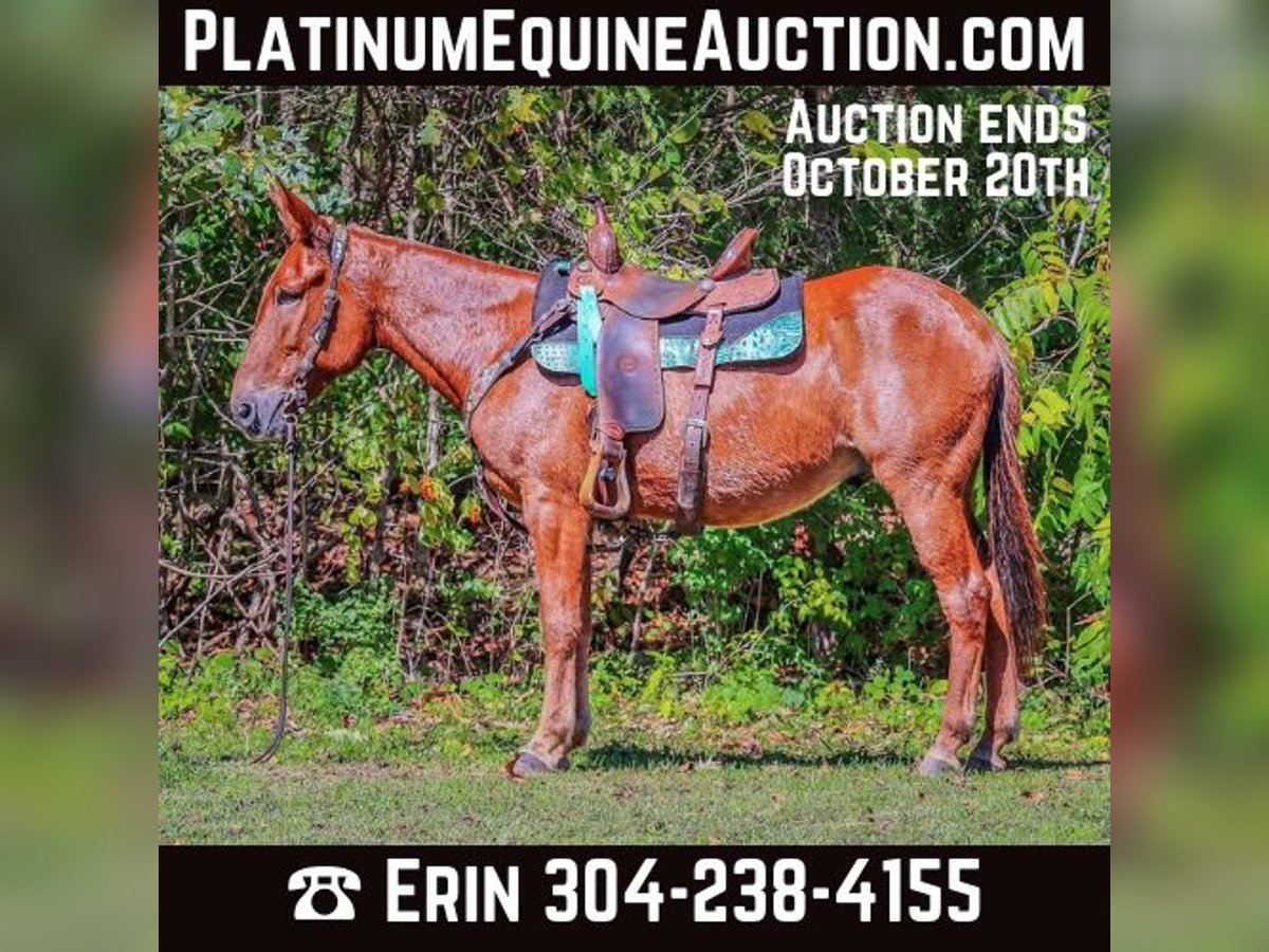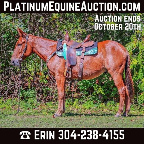ONLINE AUCTION Place your bids at www.PlatinumEquineAuction.com Starting Bid $3500 Auction ends October 20th, 2024 Need a new saddle? Check out White Rock Saddles on our website or Facebook! John is a super nice SORREL JOHN MULE that has been trained and shown in ranch pleasure. He stands 14.3 hands tall and can do it all! He is 11 years old and rides around like a Quarter Horse. He is well trained and a fancy broke mule with lots of eye appeal. He has been trail ridden and has done all the trail obstacles including crossing bridges, tarps, over poles, and tilt bridges. He will side pass, yield to leg cues, has a one step lope, and a great stop. John has been used to pony colts and drag deer out of the woods. He has been in steep country and rocky ground. He is sure footed and a really comfortable 4 wheel drive mount. He has had guns shot off of his back and been used for hunting in the mountains. He is the first one to meet you at the gate, he is personable and likes a job. He rides out alone, is traffic safe, and will also ride in a group. He is fine with dogs trailing his heels. He picks up all four feet, stands to be shod, tacked, mounted, and groomed. He has excellent ground manners. He is fine to handle his ears. John is a super nice mule to be around that is well trained, seasoned, and a nice mover. Call HH Horses Erin 304-238-4155 Located in Flemingsburg, KY. ONLINE AUCTION Place your bids at www.PlatinumEquineAuction.com Starting Bid $3500 Auction ends October 20th, 2024 Need a new saddle? Check out White Rock Saddles on our website or Facebook!