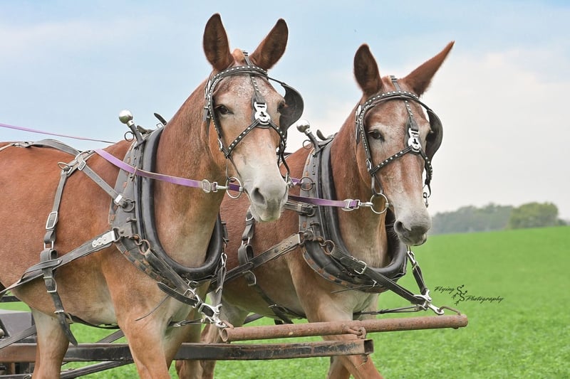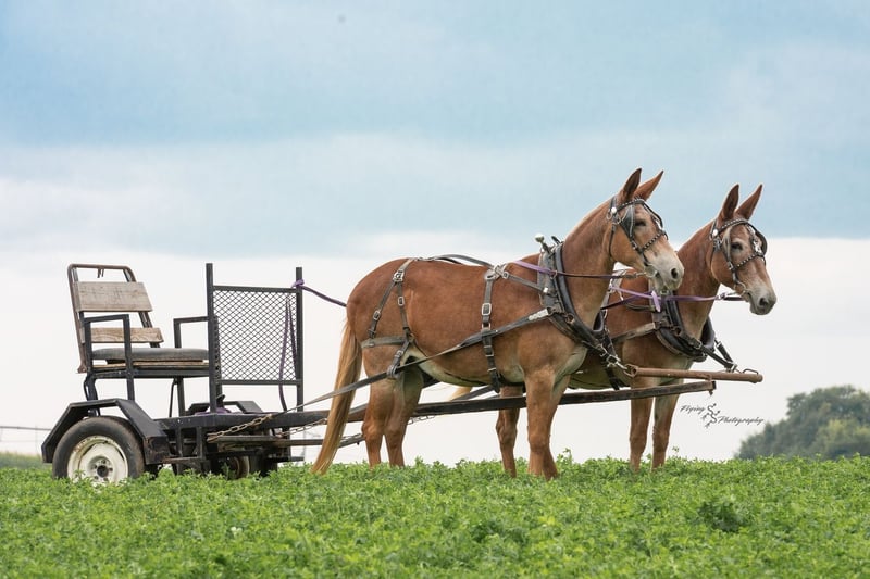🍁𝒕𝒉𝒆 𝐅𝐀𝐋𝐋 𝑺𝒑𝒆𝒄𝒕𝒂𝒄𝒖𝒍𝒂𝒓🍁 Happening now thru MONDAY | SEPTEMBER 22nd - Available EXCLUSIVELY on HorseBid's website! For more details and to register visit: www.Horsebid.com CONSIGNOR CONTACT: Rafter D Mules 651-303-7056 LOCATION: Hastings, MN BREED: Mule REGISTERED: No COLOR: Blonde HEIGHT: 14.2 John - 14.3 Molly AGE: 13 GENDER: John Mule Have you spent your life dreaming of having your own team of mules to take you, your friends, and your family on wagon rides through the scenic trails of the countryside? Meet Barney and Thelma Lou! We are proud to offer this team that is beginner friendly, safe enough to trust with your family, and as honest as the day is long. While they are confident hitched side by side under harness, they are also broke to ride and pack! Barney and Thelma Lou are a well-trained team that can be easily hitched by one person. They have been used on wagon trains, working around the farm, and have been hitched to all types of farm equipment including grain wagons. They ride well together and also pack well together. This handsome couple are in the prime of their life and would make a great addition to anyone's farm as well as family. Barney and Thelma Lou are both easy to catch, not ear shy, and are both used to having their feet handled. Whether driving down the highway, gravel road, or through the fields, this team is easy to handle and so much fun to work with. Thelma Lou has a mass on her lower left side. It has been examined by a veterinarian, and they stated that it was comparable to a wart and was not of any concern. We absolutely love this team and know that you will too! If you have any questions about Barney and Thelma Lou or would like to meet them prior to the auction ending, please contact Dillon at Rafter D Mules 651-303-7056.