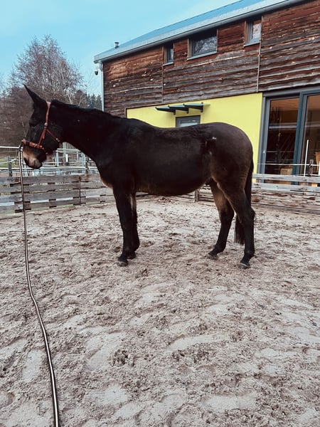 Lieve, grote muilezel geschikt voor beginners in muilezel rijden