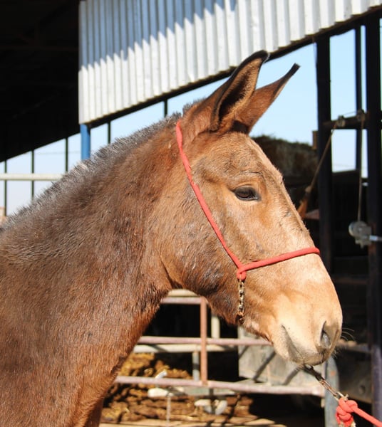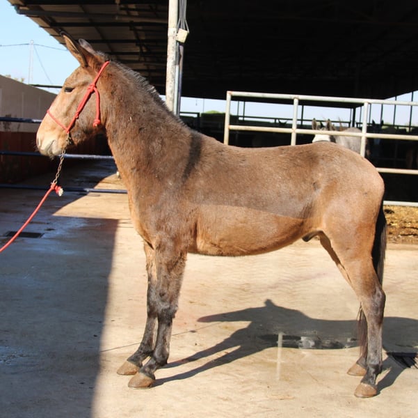 All of our noble mules have been ridden, are traffic-safe, and are not spookish. They are regularly taken to Romerías and Ferias (Spanish festivals), so they are accustomed to a certain amount of noise and commotion. The handsome mule is gentle with the rider, making it ideal for a relaxed hack. Upon request, he can stay with us for further training and schooling. International transport can be arranged.