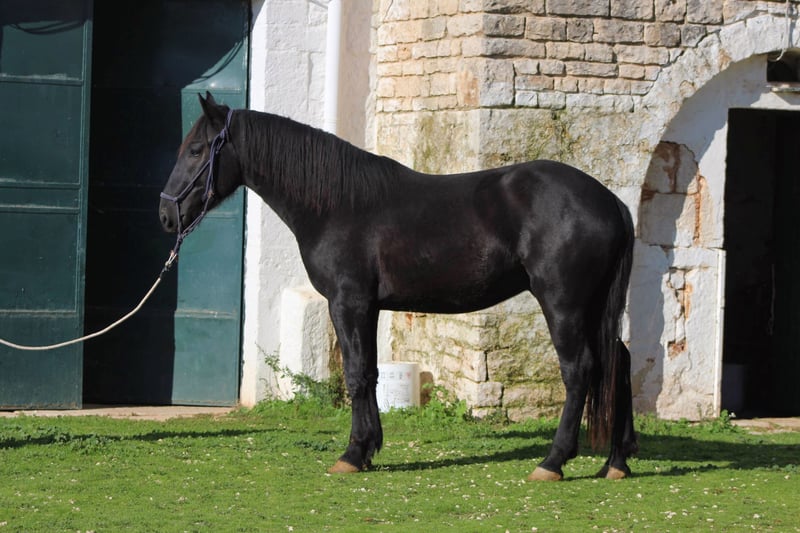 Baroque yet light-footed, blessed with a wonderful affectionate character—that's Tananai. Tananai grew up alongside some friends within the herd of the breeder from whom we are now privileged to offer him. He is familiar with life on a traditional Italian farm, which means dogs, guard geese, cows, tractors, and more dogs. He has professionally learned the basics of young horse training and is now looking forward to taking the next steps in his education together with you. Currently, Tananai is not yet gelded but can be castrated upon request, which is included in the price. Born in 2023, his estimated final height is over 16.1 hands. If you would like to know more about Tananai, we look forward to your message. X-rays are available and, upon serious interest, can of course be viewed. We also plan everything else for you—clinical pre-purchase examination, handling of the sales contract, transport to your home stable, and more. Cavallo Murgese.de – on behalf of and in cooperation with the Italian Murgese Association A.N.A.M.F.