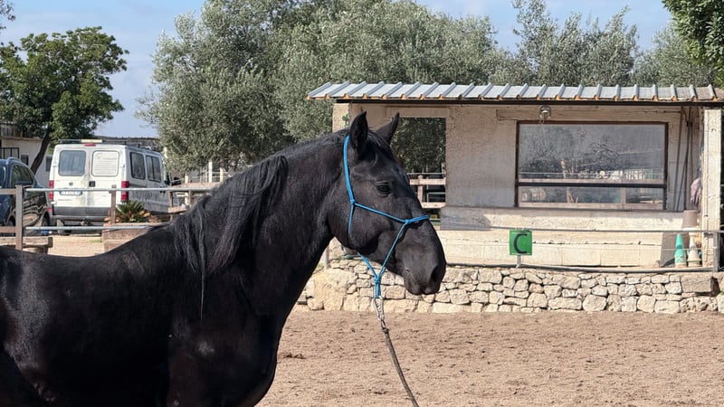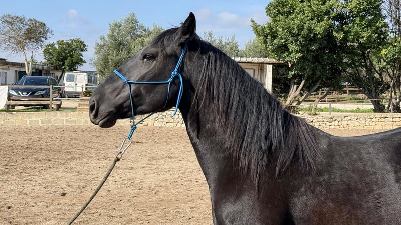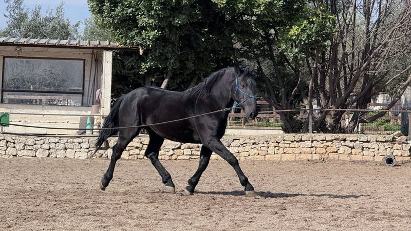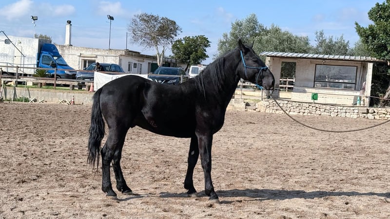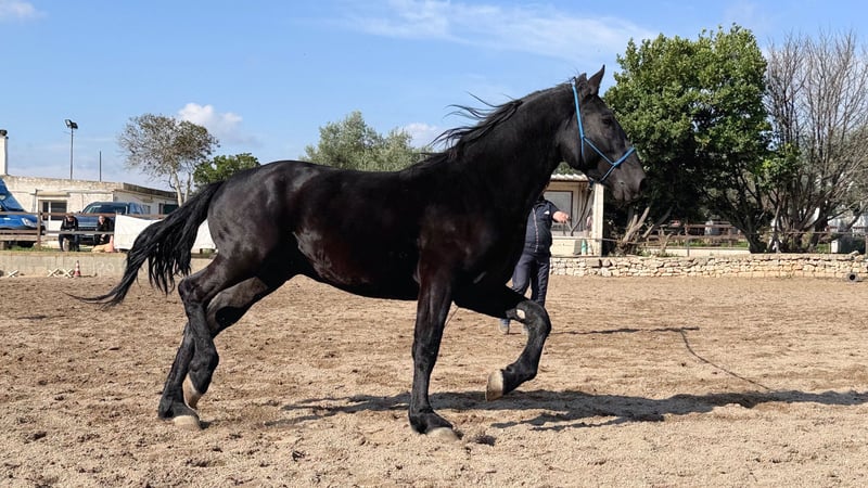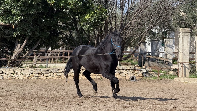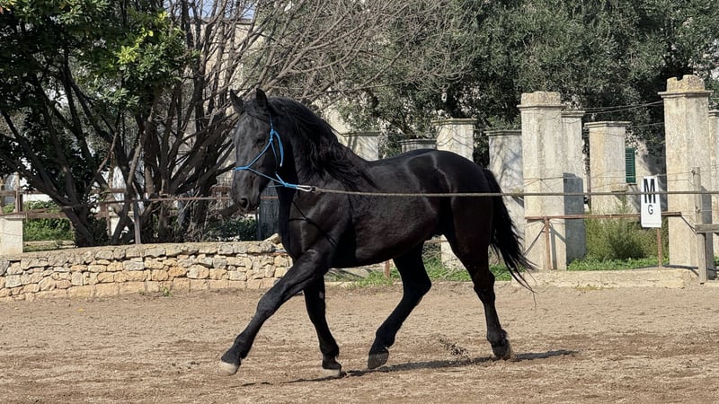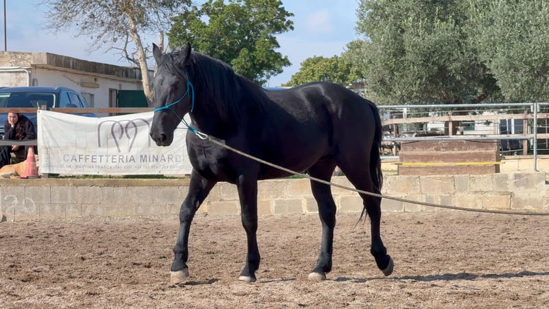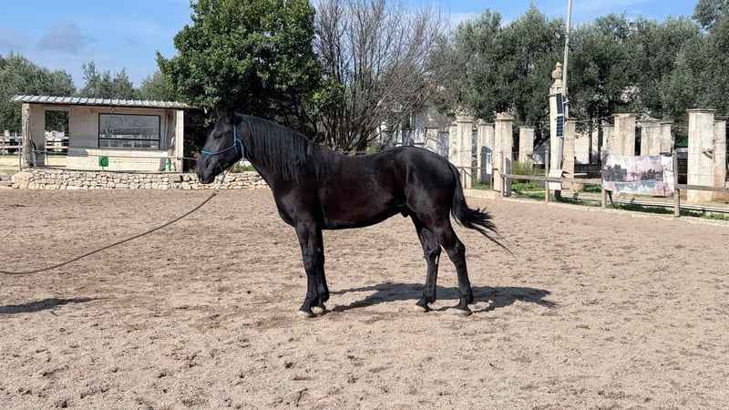 ~ Sinatra ~ Is een van die paarden waarvan we de ontwikkeling al enkele maanden nauwlettend volgen en die ons telkens weer opvalt. Sinatra behoort tot de lichtere, maar toch optisch barokke type Murgesen. Zijn uiteindelijke hoogte schatten we op ongeveer 1,58 m. De jonge hengst beschikt over een goede basis, zoals een mooie bovenlijn en een aangename hals. Kortom, een typvol exemplaar. Daarnaast wordt hij gekenmerkt door een zeer vriendelijke aard: open en vriendelijk, nieuwsgierig en niet opdringerig, verkent hij de mens op een prettige manier. De jonge hengst is in deze fokkerij geboren en opgegroeid. Hij was rassetypisch buiten, tot hij op 2-jarige leeftijd naar de stallen verhuisde en aan mensen werd gewend. Sinatra kent alle basisvaardigheden die men op zijn leeftijd moet beheersen. Momenteel leert hij verdere fundamenten, waaronder het zadel. Sinatra staat altijd open voor leren en toont zich van zijn beste kant. Wil je Sinatra persoonlijk leren kennen? Hij staat momenteel nog in zijn thuisgebied in Apulië – wij plannen graag samen met jou een bezoek ter plaatse. Röntgenfoto’s neemt hij mee, en op verzoek kan hij direct bij de fokker worden gecastreerd en een klinische AKU worden georganiseerd. Wij regelen verder alles voor jou – de castratie (in de prijs inbegrepen), afhandeling van het koopcontract, transport naar jouw thuisstal, enzovoort. We kijken uit naar je bericht! Meer foto’s en een bewegingsvideo op aanvraag. - in opdracht van de Italiaanse Murgesenvereniging A.N.A.M.F.