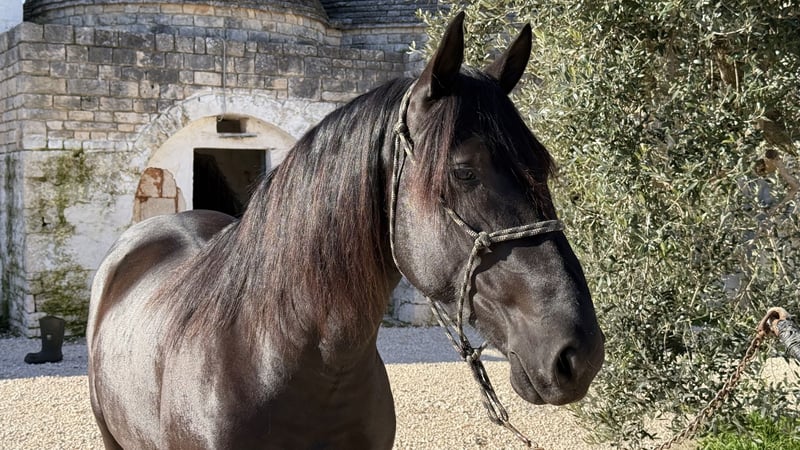 T.F. Proust Thor Ein junger Mann, der das Spielen und Hinterfragen auf eine liebevolle und charmante Weise sehr gut beherrscht. Dabei aber nie unhöflich oder aufdringlich wird. Bei der Arbeit im Roundpen ist Thor äußerst aufmerksam und besteht auf eine feine Körpersprache. Thor ist mit einigen Kumpels in der Herde des Züchters aufgewachsen, von dem aus wir ihn nun auch vermitteln dürfen. Er kennt das Leben auf einer Masseria, was bedeutet: Hunde, Wachgänse, Kühe, Traktoren, nochmal Hunde. Das Jungpferde ABC hat er professionell gelernt und so freut er sich nun auf die weiteren Schritte seiner Ausbildung zusammen mit Dir. Aktuell ist Thor noch nicht kastriert, kann und wird auf Wunsch noch beim Züchter durchgeführt (im Preis enthalten) Geboren 2023, Geschätzt wird sein Endmaß etwa 165 Wer mehr über Thor wissen möchte - wir freuen uns über Deine Nachricht. Röntgenbilder sind vorhanden und bei ernsthaftem Interesse natürlich einsehbar. Ebenso planen wir alles weitere für Dich - klinische Ankaufsuntersuchung, Abwicklung des Kaufvertrages, Transport in Deinen Heimatstall usw. Die Vermittlung des Pferdes erfolgt ausschließlich ehrenamtlich und unentgeltlich im Auftrag des Besitzers (Mitglied im Murgesenverbandes A.N.A.M.F.). Der Vermittler tritt hierbei lediglich als neutraler Mittler zwischen Besitzer und potenziellem Käufer auf.