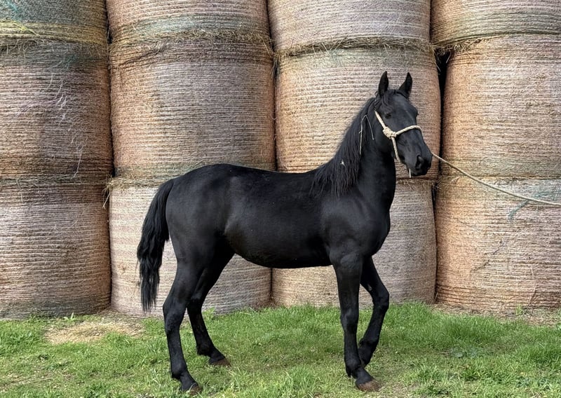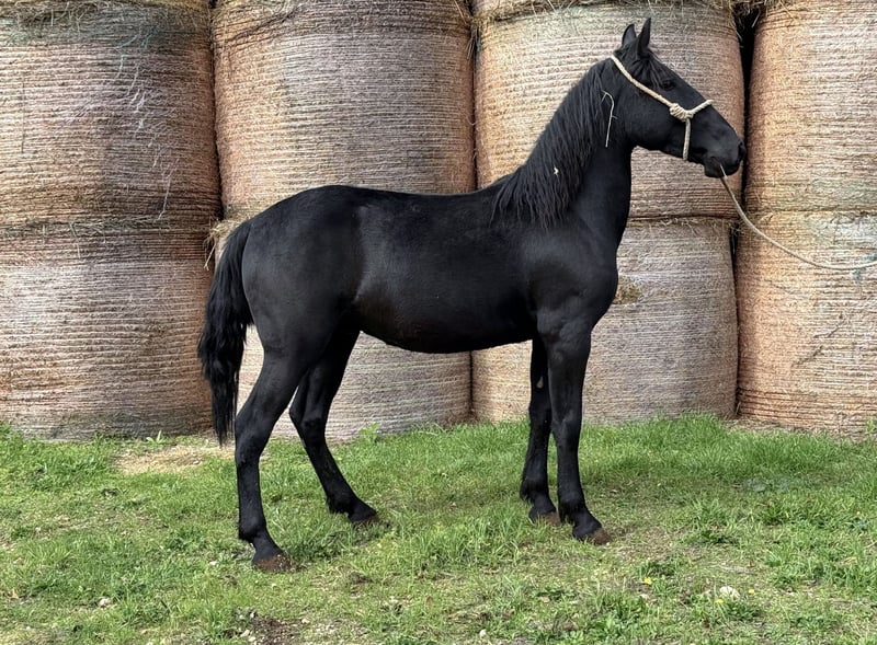 Tasmania Tasmania is a young and compact Murgese stallion that has already been castrated. Born in 2023, he is currently approximately 150 cm tall. He impresses with his baroque conformation. Tasmania is halterled, well-behaved in handling, but still somewhat raw due to his age. He is currently a bit shy around people, but he remains calm and free of bad habits when faced with new situations. With patience and consistent, loving training, he is sure to develop further in a positive direction. An exciting young prospect for breed enthusiasts or for horse lovers who enjoy training a young Murgese and want to develop a horse according to their own ideas. If you would like to know more about Tasmania – we look forward to your message. X-ray images are available and can be viewed upon serious interest. We will also handle everything else for you – clinical pre-purchase examination, processing of the purchase contract, transport to your home stable, etc. The placement of the horse is carried out solely on a voluntary basis and free of charge on behalf of the owner (member of the Murgese Association A.N.A.M.F.). The intermediary acts only as a neutral broker between the owner and potential buyer.