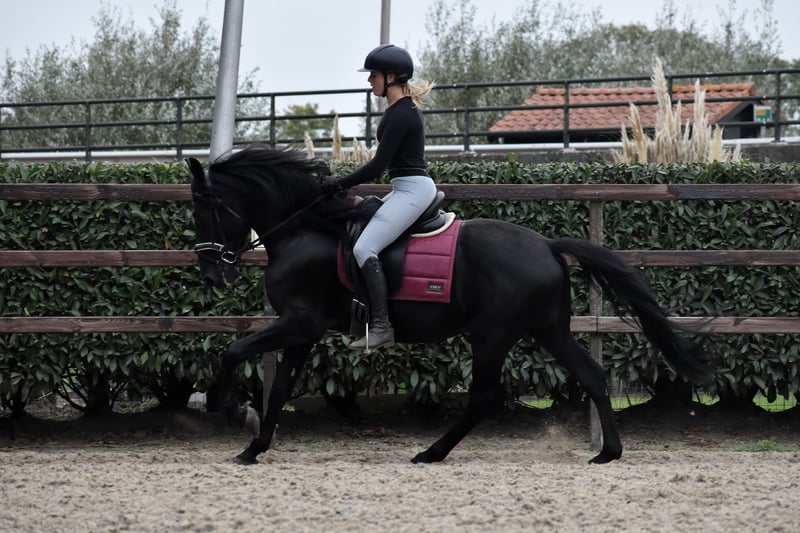 Einzigartig! Das Murgese-Pferd stammt aus Italien und ist bekannt für sein ausgeglichenes Wesen, seine angenehme Rittigkeit und seine hohe Intelligenz. Dieser äußerst hübsche, vierjährige Hengst ist etwa 1,62 m groß (wird noch wachsen). Im Umgang ist er sehr ruhig und entspannt, man kann ihn überall abstellen und genießt die Aufmerksamkeit, die er erhält. Unter dem Sattel ist er sehr angenehm zu reiten, er wird mit leichten Hilfen geritten. Er kann sich hervorragend und mühelos bewegen, besitzt eine großzügige Gangart und ein kräftiges Hinterbein. Besonders seine Galoppade ist wunderbar. Er hat einen angenehmen, weichen Maulkontakt und lässt sich gut anarbeiten. Er ist vorwärts orientiert, aber gut bei Zügel und zurück zu reiten. Aufgrund seiner etwas vorwärts gerichteten Art und seiner leichten Reitbarkeit ist er nicht für ängstliche oder unsichere Reiter geeignet. Er wird hier jedoch regelmäßig von Mädchen mit ausreichender Reiterfahrung geritten und zeigt sich dabei äußerst brav. Wir haben auch schon einmal einen Sprung mit ihm gemacht, was er ebenfalls sehr gut gemeistert hat und sichtlich Spaß daran hatte! Wir reiten mit ihm mit Flagge, ohne Sattel, an großen Traktoren vorbei – alles kein Problem für ihn. Ich halte ihn für sehr geeignet für jemanden, der sowohl im Springsport als auch in der Dressur aktiv sein möchte, aber auch für jemanden, der ein zuverlässiges, vorwärts orientiertes Pferd mit einem ruhigen Charakter für Sport oder Freizeit sucht. Er ist kürzlich röntgenologisch untersucht und für den Sport zugelassen. Standort: Region Utrecht. Für weitere Informationen rufen Sie bitte an unter 06-19830888. Für Termine und Videos können Sie eine WhatsApp-Nachricht an 06-12876667 senden. E-Mails werden nicht beantwortet. Außerdem haben wir mehrere Murgese-Pferde zum Verkauf.