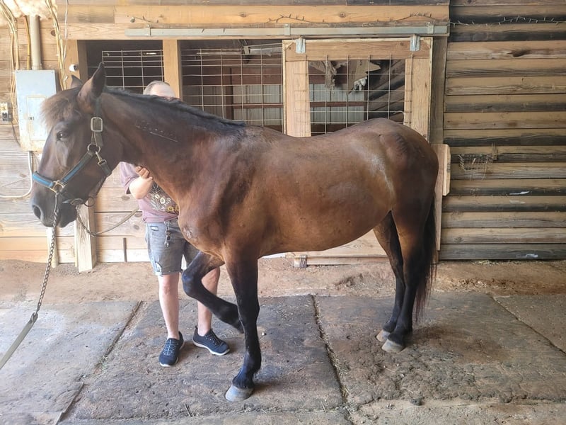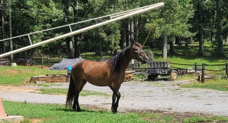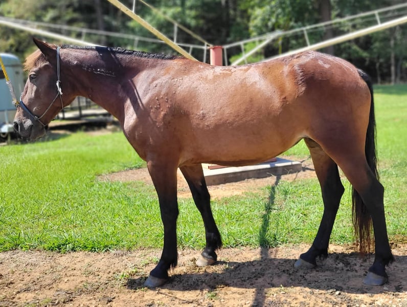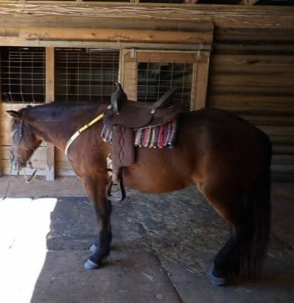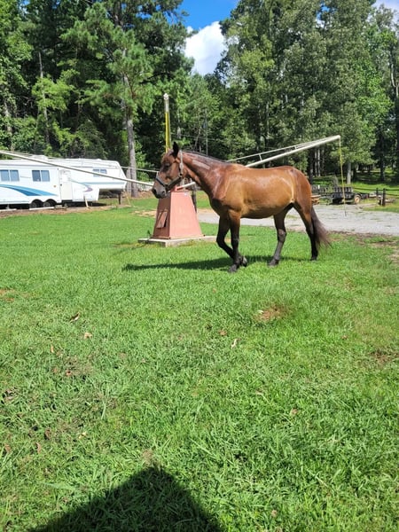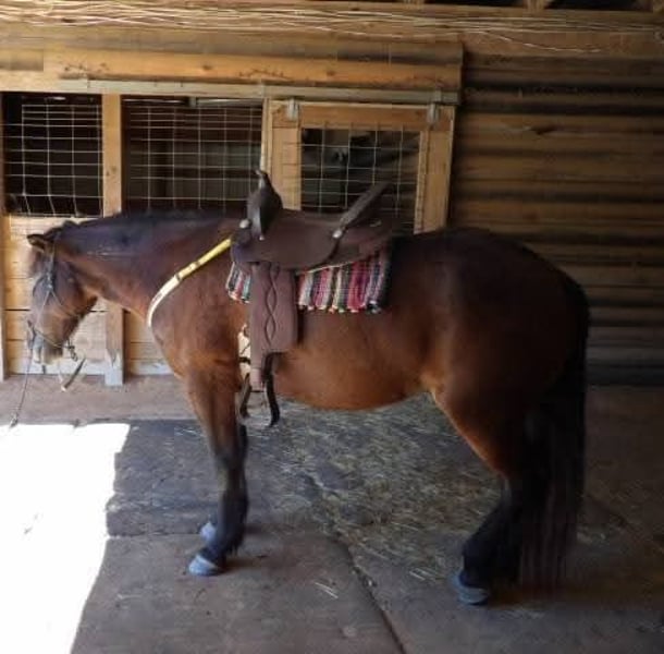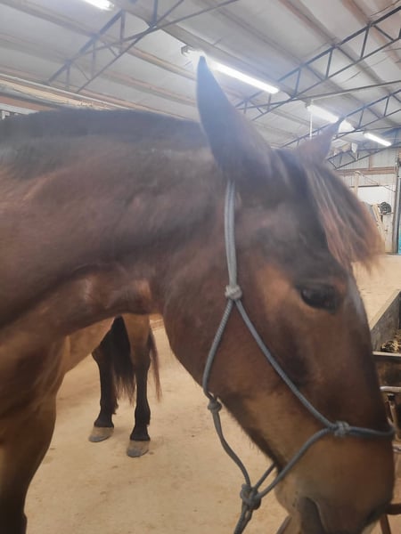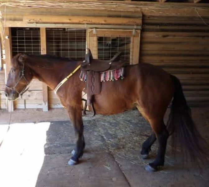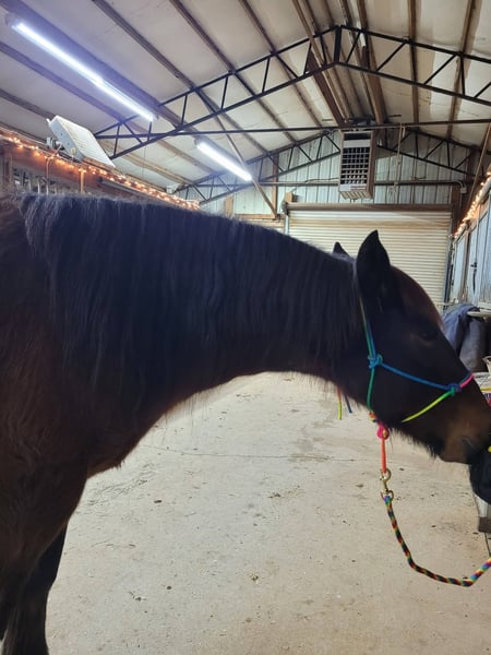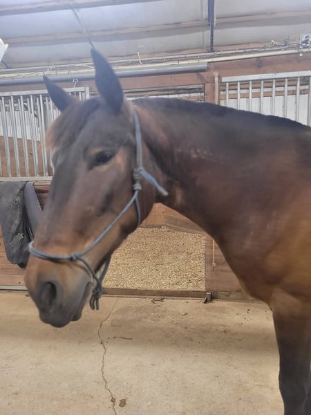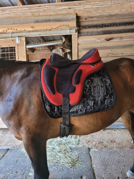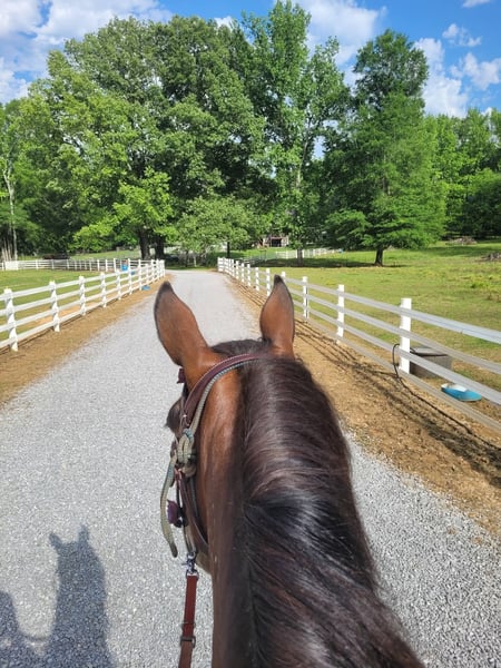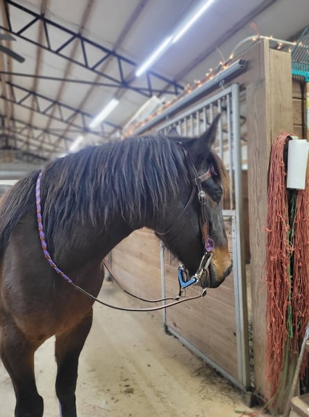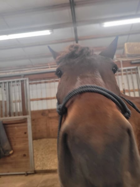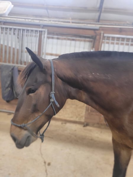 Broke to ride. However, is NOT perfect. She's been ridden on small trail type rides, but nothing formal, and no hard training on riding besides getting on and going and riding/lunging in the round pen and arena. She is a little hesitant around new people, so she will need extra patience and understanding at her new home and even when meeting her here. She does typically wear front shoes in the summer because of all the rain we get and the rocks around the barns and roads we do ride on. She does not spook at vehicles. She just recently got her teeth done and all vaccines/Coggins. I did recently shave and trim off her mane due to constant knots. She's a little hesitant with clippers around her ears, but she's fine after a bit. Her ears do have issues with what we think is bugs, but can't be sure. They are mostly bald inside because she rubbed off all the hair in them last summer, and the vet gave us stuff to put in them, but it didn't help. She will come with a bag of Santa Cruz itch/allergy supplements we bought to use this year but haven't yet. She gets what we think is hives in the summer (again, likely due to bugs), but the vet wasn't sure because when she came out, they were gone, and all she had to go off of was a picture. I have led her from the barn to the pasture with just a halter. She currently rides in a special D-ring bit (I can provide a picture of it). If you want all of her tack (the western saddle and bridle with purple flowers is NOT available, it is not mine), I can let it go with her for a small extra cost, along with all brushes, etc.