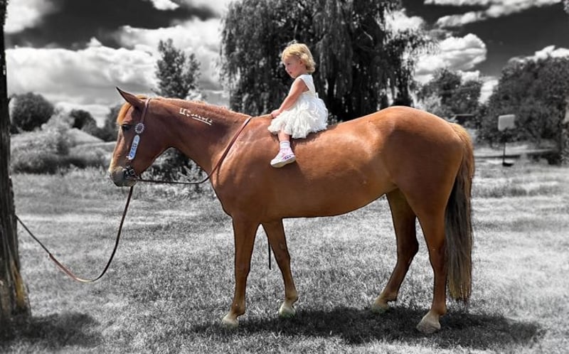 "VERFÜGBAR BEI DER ONLINE-PFERDEAUKTION UNDER www DOT MagicHorseAuction DOT com DAS BIETEN IST JETZT OFFEN BIS DIENSTAG | 22. JULI - SOFORTKAUF MÖGLICH! *Der endgültige Preis wird auf der Auktionsseite festgelegt* KONTAKTINFORMATIONEN DES EINLIEFERERS: Dynamite Horses 970-632-3644 STANDORT: Fort Collins, CO Hope ist der ultimative Mustang! Sie hat ein absolut atemberaubendes Aussehen und ihre Konformation ist erstklassig, und sie bewegt sich ebenso beeindruckend, wie sie aussieht. Darüber hinaus ist Hope eines der liebenswertesten Pferde im Stall, sie hat eine ganz besondere Persönlichkeit und liebt ihre Arbeit, sie ist die Erste, die dich am Tor begrüßt, egal ob sie in einer Box oder auf der Weide gehalten wird! Wir haben Hope überallhin mitgenommen, und sie fürchtet nichts – vom Trubel des Stadtlebens bis zum extremen Bergreiten – dieses Pferd kann wirklich alles. Hope hat mehr „Stopp“ als „Go“ und ist glücklich, einfach den Trail entlang zu trotten, hat aber genug Athletik, um wettbewerbsfähig zu sein und in fast allem eine großartige Perspektive zu bieten. Hope wurde an belebte Innenstadtumgebungen gewöhnt, inklusive Autos, Fahrrädern, Hunden und Menschenmengen. Sie bleibt entspannt und gehorsam und tritt selbstbewusst in jede Richtung, die du ihr zeigst, ohne zu zögern. Auf den Bergwegen ist Hope ein absolut zuverlässiges Pferd, das raues Terrain und steile Wege mit Leichtigkeit meistert und Bären, Rehe, Füchse und Elche begegnet ist und jede Situation wie ein Profi gemeistert hat. Neben ihren Fähigkeiten im Gelände glänzt Hope auch in der Arbeit in der Arena. Sie hat einen geschmeidigen Schritt, Trab und einen Western Pleasure-Lauf, Hope hat eine schöne Sammlung, gleitende Stopps, fliegende Wechsel und weiß, wo ihr Körper ist! Dazu kommt ein tolles Rahmen und ein einfacher Rückwärtsgang. Sie ist unglaublich zuverlässig und geeignet für Reiter jeden Alters oder Erfahrungsgrads und kümmert sich immer um ihren Reiter. Hope wird seitlich bis zur Aufsteighilfe gehen, um dich abzuholen, und hat umfangreiche Bodenmanieren! Hope ist auch geschickt im Umgang mit Kühen und genießt das Sortierspiel und lokale Brandings! Hope wird eine Fahne, eine Plane, einen Fallschirm oder alles, was du von ihr verlangst, tragen sowie über alles gehen/kreuzen, was du möchtest. Hope ist als Hunter-Jumper begonnen und wir haben sie auch zu ein paar Geländekursen gebracht, sie hat eine große Vorliebe für die englische Welt entwickelt und hat einen erstaunlichen Sprung, eine gute Geschwindigkeit und Sammlung! Wir haben sie 2'6 gesprungen, mit Raum für Verbesserung. Sie ist kräftig, athletisch und intelligent, was sie zu einem vielseitigen und zuverlässigen Pferd macht. Hope lädt, steht angebunden, wird gebadet, gesattelt, gezäumt und ist großartig für den Tierarzt und den Hufschmied. Verpasse nicht diese wunderschöne Stute! Schau dir ihr Video an und vereinbare einen Termin, um sie zu sehen – du wirst nicht enttäuscht sein!"