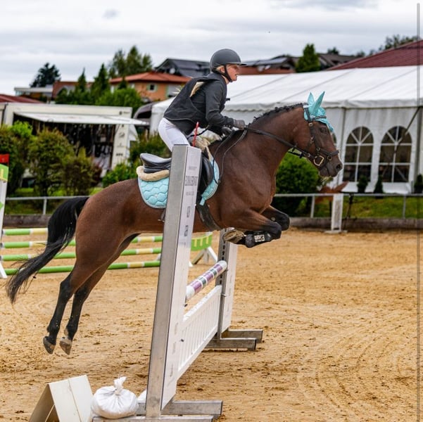 Missy Mistral to wyjątkowo spokojna i odporna na stres 13-letnia klacz rasy New Forest (wysokość 147 cm), odnosząca sukcesy w skokach do 110 cm. Jako wszechstronny allround pony sprawdza się w dyscyplinach takich jak ujeżdżenie, skoki, rekreacja i western. L-ukończona, przyjazna do załadunku i czesania, zdrowa i absolutnie niezawodna – to idealny partner dla ambitnych jeźdźców. Sprzedawana wyłącznie dlatego, że nasza córka przeszła na większego konia i sama chce mieć większego wierzchowca. Lokalizacja: 94437 Mamming (Bawaria) | ⸻ 🐴 Długi opis (główny tekst) Missy Mistral to niezwykle spokojna i odporna na stres klacz rasy New Forest, która zachwyca swoją wszechstronnością, motywacją i opanowaniem. W wieku 13 lat, przy wzroście 147 cm i szczerym, wrażliwym charakterze, jest idealnym allround pony dla ambitnych jeźdźców poszukujących niezawodnego, chętnego do pracy i kochającego konia. Missy jest w pełni wytrenowana na poziomie L i sprawdza się zarówno w skokach, ujeżdżeniu, wszechstronności, jak i rekreacji. W skokach osiągnęła już liczne miejsca na podium do 110 cm – jej najlepszy wynik to miejsce w Stadelpaurau. Wykazuje przy tym doskonałą orientację, serce i świetne podejście do skoku. Również w codziennym użytkowaniu Missy Mistral pokazuje swój wspaniały charakter: Nie jest lękliwa, jest absolutnie niezawodna, zmotywowana, chętna do nauki i zawsze posłuszna. Czy to na terenie, w hali, czy na zawodach – Missy idzie z jeźdźcem przez wszystko i zawsze obdarza go swoim zaufaniem. ⸻ 💖 Charakter i mocne strony • Niezwykle spokojna i niezawodna • Wrażliwa, ale zawsze opanowana i odporna na stres • Chętna do nauki, zmotywowana i pracowita • Przyjazna do czesania i załadunku • Nie lękliwa – prawdziwe partnerka na każdym kroku ⸻ 🏆 Wykształcenie i predyspozycje • W pełni wytrenowana na poziomie L • Sukcesy w skokach do 110 cm (liczne miejsca na podium) • Nadaje się do ujeżdżenia, skoków, wszechstronności i rekreacji • Otwartość na pracę westernową • Doświadczona na zawodach i pewna w terenie ⸻ 🩺 Zdrowie i opieka • Zawsze zdrowa, regularnie poddawana kontroli • Posiada starsze zdjęcia rentgenowskie • Zadbania, w dobrej kondycji i gotowa do pracy ⸻ 🌟 Szczególne cechy • Konieczny charakter – idzie przez życie z jeźdźcem na dobre i na złe • Idealna dla ambitnych jeźdźców i rodzin • Doskonała jako wszechstronny i sportowy koń • Połączenie osiągów, serca i niezawodności • Idealny koń na start w turniejach lub z dalszymi sportowymi aspiracjami