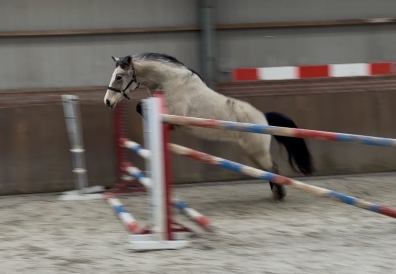 Door inruil verkregen deze schitterende allround D pony. ‘Vikki’ is een opvallend mooie D pony merrie. Ze beschikt over een mooie valk/isabelle kleur. Ze staat correct op haar benen en heeft veel body. Ze kan netjes bewegen en zeer goed springen. Ze kan een klein parcoursje rond springen. Ze heeft een frans paspoort en haar vader is een Newforest. Bij interesse graag bellen of appen op telefoonnummer: +31643197337