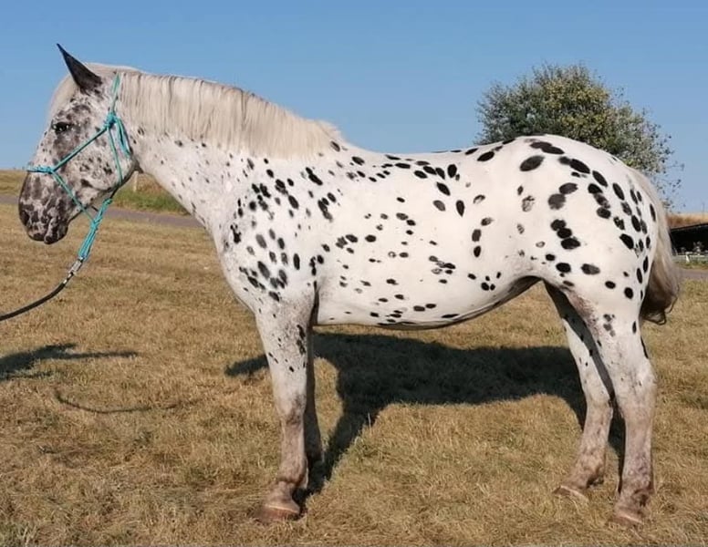 Lichtspiel was born on March 29, 2015. She stands approximately 1.60 meters tall but appears more substantial. Lichtspiel has been driven single and is very well ridden. She is capable of all lateral movements and transitions, including rein-back, and is rideable and sensitive to the aids. She has successfully completed both her driving and riding performance tests with very good results. At the riding horse inspection, she was the winner with an overall score of 8.19. She placed third at the Austrian Riding Horse Championship in 2019. Lichtspiel is officially recognized as a mare with a breeding value of 7.86 / 2a and is classified as a premium mare in the studbook. She was qualified for the national show but was unable to participate due to health reasons. Lichtspiel is a Verband Premium mare and PSSM1 free. Her sire is the stallion Famos Elmar XIV, a well-known stallion by the legendary Franz Elmar. On her dam’s side, she is out of Freund Elmar, and her dam is the proven state premium mare Laara, who has distinguished herself at regional and national shows. The breeding stallion Fabelhafte Elmar is a full brother to Lichtspiel. She has been in my possession for 5.5 years and is being sold due to herd reduction. Lichtspiel is exemplary well-behaved both in the herd and with people. In the field, she is fearless, traffic-safe, and diligent. She is ambitious and eager to be further trained. So far, she has had four foals, all perfectly marked black-spotted foals, with very smooth births. Lichtspiel has been inseminated four times with us.
