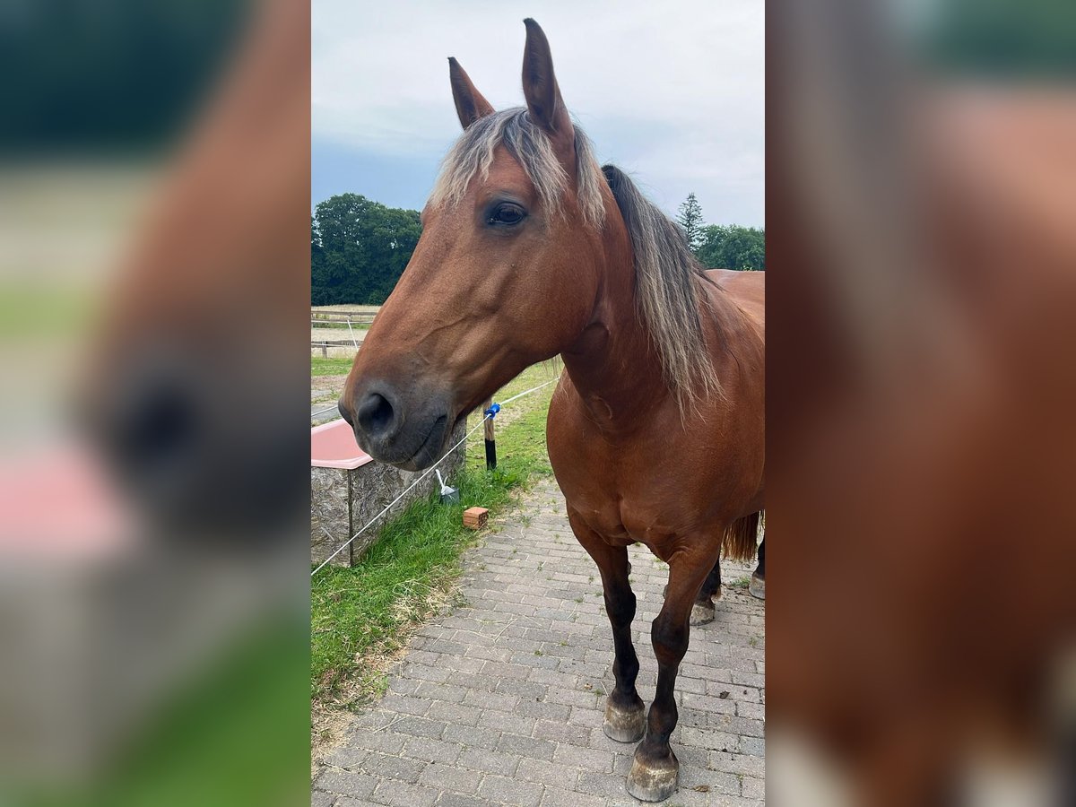 Hello, Due to personal reasons, I have made the very difficult decision to rehome my 14-year-old mare Honey. She has been with me for 7 years. Unfortunately, the situation is urgent; she is currently alone with her two donkey friends, which is not a sustainable long-term solution. Her horse companion has passed away. She is ridden bitless, primarily Western or for leisure. Our favorite activities are relaxed rides across fields and through forests, on a long rein. Honey responds very well to voice commands and is always motivated both under saddle and on the ground. She is familiar with the riding arena, indoor riding hall, round pen, ground work, lunging, etc., and is very straightforward, fearless, and eager to learn in all situations. Her saddle is a Triple W, custom-made to fit her tree, and can be included at an additional cost. She is familiar with dogs, cats, donkeys, cattle, and sheep, and is always gentle and friendly, including with children. However, she is not suitable as a children's or beginner's horse. Currently, she is housed with two donkeys, among other animals. She is loading calmly and is very cooperative with the farrier; she is barefoot. In the terrain, she wears hoof boots. For two months, Honey and I participated in Horseman Chip Training at a different stable, where we learned all the fundamental groundwork through daily training. Since I have had her, she has been kept in a spacious open stable, which is a prerequisite for her new home, along with a reliable, trusting, and loving new owner. I am only placing her in the best hands. For further questions, please feel free to send a message, also via WhatsApp or by calling 0170 3895635.