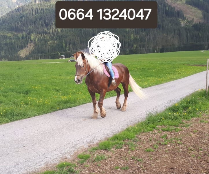 Noriker 2A chestnut mare, white-maned, 16 years old, approx. 1.65 m, safe to ride, pull & shoe, 100% roadworthy, has been driven single & double harness, 100% reliable horse for young and old. Further information only by telephone. Further photos and videos can be sent on request. Delivery possible!