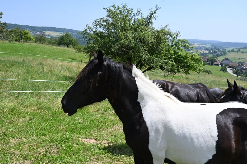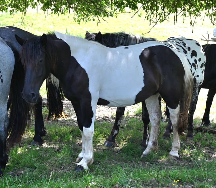 Melli è una cavalla Noriker di 2,5 anni, di colore pezzato nero. È molto affettuosa e coccolona. Melli vive con me da quando era un puledro. La sua proprietaria deve separarsi da lei e dalla sua mamma Miriam, quindi mi ha chiesto di occuparmi di questo. Melli crescerà fino a circa 160-163 cm. È completamente vaccinata, regolarmente sverminata, negativa al PSSM1 e ha già visto il maniscalco. Il padre di Melli è il campione Tiamo Z Vulkan, che è stato approvato con un punteggio di 7,91. Inoltre, ha superato il test di performance per stalloni come vice-riserva con un indice totale di 118,32. La sua mamma è Miriam, che è stata registrata nel libro delle fattrici con un punteggio di 7,64. Melli sale molto bene nel trailer per cavalli ed è educata dal maniscalco. Conosce perfettamente le basi per i giovani cavalli ed è impavida, amichevole e con la testa sulle spalle. Padre: Tiamo Z Vulkan, Madre: Schneider Vulkan.