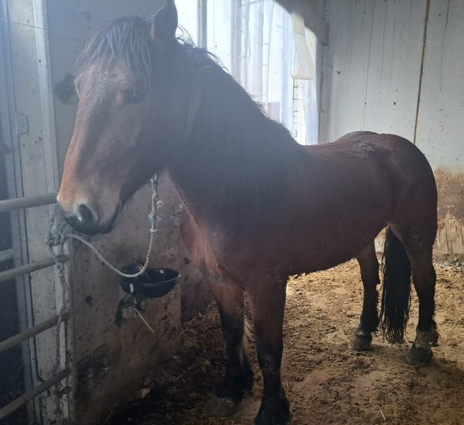 Vackert, 3-årigt, mörkbrunt Noriker-sto, med papper, superstamtavla, idealisk för avel, till salu. Ytterligare information endast via telefon! Leverans möjlig!