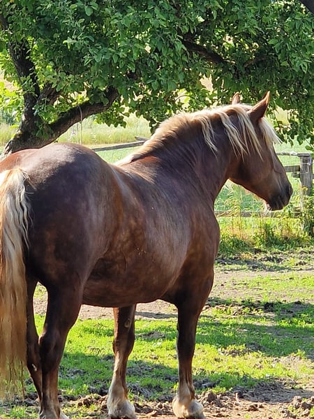 **For Sale: Noriker Mare, born 2018, dark brown, 16.1 hh** We are offering an elegant Noriker mare, born in 2018. Standing at 16.1 hands, she presents as a strong and expressive leisure horse, suitable for larger riders as well. She is affectionate and gentle, although she has only been ground-worked due to lack of time. She would thrive with a meaningful job. She is familiar with children, dogs, and all kinds of agricultural machinery. This is not an urgent sale. Equipment can be purchased additionally.