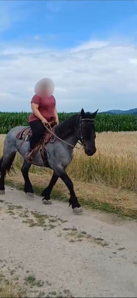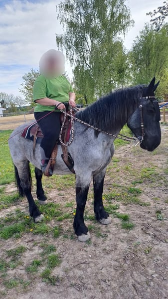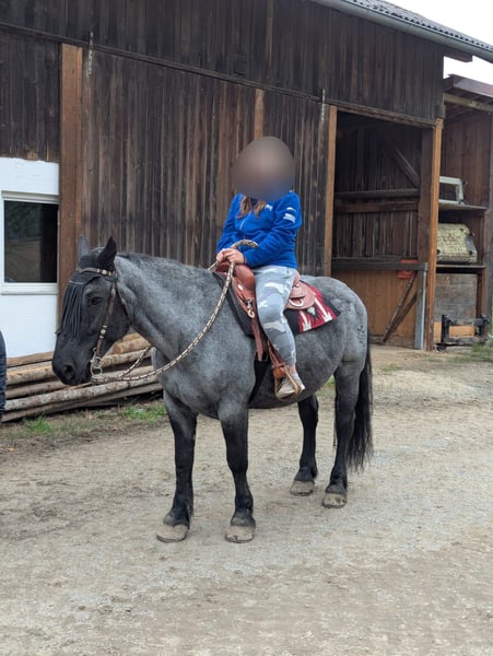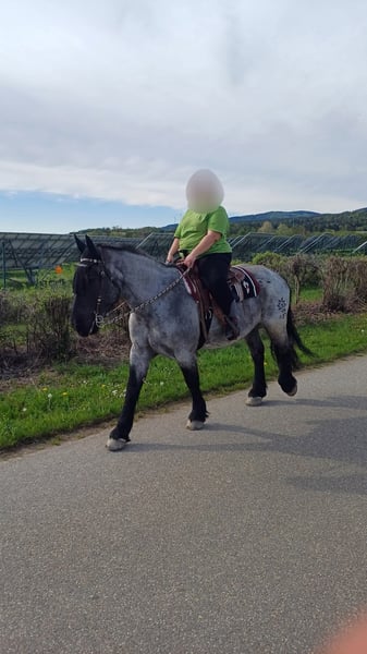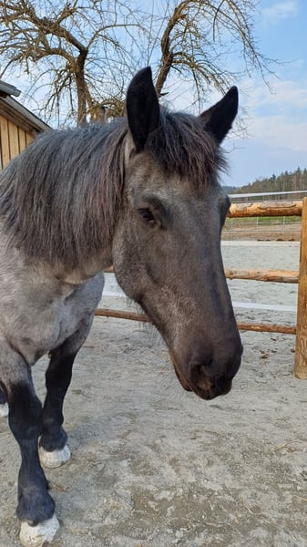 Verkaufe aus persönlichen Gründen meine schöne Stute Marina. Sie ist ein Noriker mit der Farbe Blauschimmel. Sie wird freizeitmäßig Western geritten. Beim Vorbesitzter wurde sie als Kutschpferd und als Holzrückepferd genutzt. Verladen, Hänger fahren, Hufschmied und Tierarzt ist für sie gar kein Problem. Herdenverträglich, rangniedrig. Verkaufe sie nur an erfahrene, konsequente Hände da sie kein Anfängerpferd ist. Leider wurde sie seit November nicht mehr geritten. Geburtsdatum 19.02.2017 Stockmaß 1.58m 4-fach Beschlagen Ekzemfrei V: Zenith Schaunitz XVI MV: Kraft Diamant XIV Sattel kann miterworben werden. Mehr Infos nur telefonisch. Einfach schreiben und ich rufe zurück.