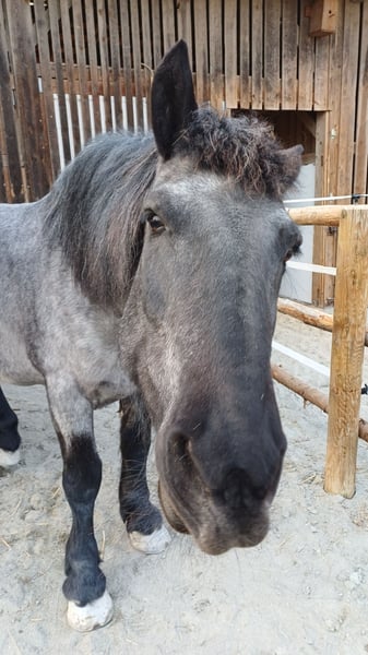Noriker merrie, blauwgrijze schimmel, koudbloed paard