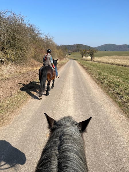 Meine ausdrucksstarke, stets motivierte und sehr lernwillige Norikerstute Ronja sucht ihren passenden Menschen. Ronja ist mit 6 Monaten zu uns gekommen und lebt in Offenstallhaltung mit anderen Pferde. Sie trägt Duplobeschlag, wird regelmäßig entwurmt und geimpft. Ronja wurde mit 3 Jahren angeritten und ist ein aufmerksames, leistungsbereites und recht unerschrockenes Reitpferd. Sie ist sehr feinfühlig im Umgang und hat schwungvolle Gänge. Ronja ist kein Anfängerpferd und benötigt einen sicheren Reiter*in mit klarer Kommunikation. Sie mag ihre gewohnte Umgebung und wäre nicht so gut für Tuniere/häufige Ortswechsel geeignet. Ronja braucht regelmäßige Arbeit und Beschäftigung, die ich ihr leider nicht mehr bieten kann. Sie arbeitet gern auf dem Platz und im Gelände allein oder mit mehreren Pferden. Kontakt auch gerne per WhatsApp und ab dem frühen Abend.