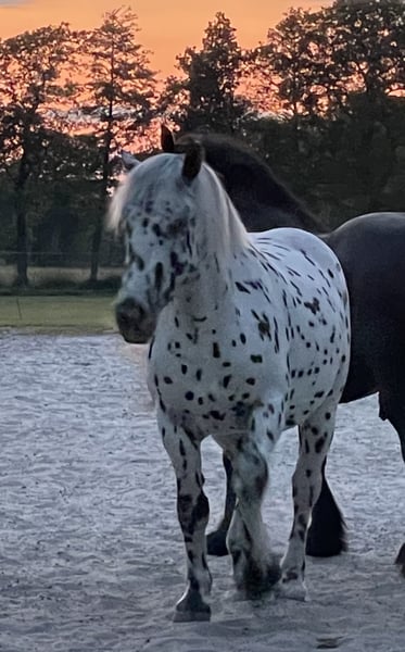 Hij is bekend met grondwerk met stangen, longeeren aan de halter, vrij trainen en is gewend aan zadel en bit. Hij is zeer ijverig en wil alles goed doen. Hij heeft karakter en is moedig. Zeer goed verzorgd, dubbele manen en volle staart. Vanwege gezondheidsredenen kan ik niet meer rijden en moet ik mijn hobby na 45 jaar in het zadel helaas opgeven. Hij woont hier bij mij in een prachtige open stal met veel weidegang en een zandbak, het hele jaar door buiten, zo veel als hij wil. Hij is echter ook gewend aan boxstalling.