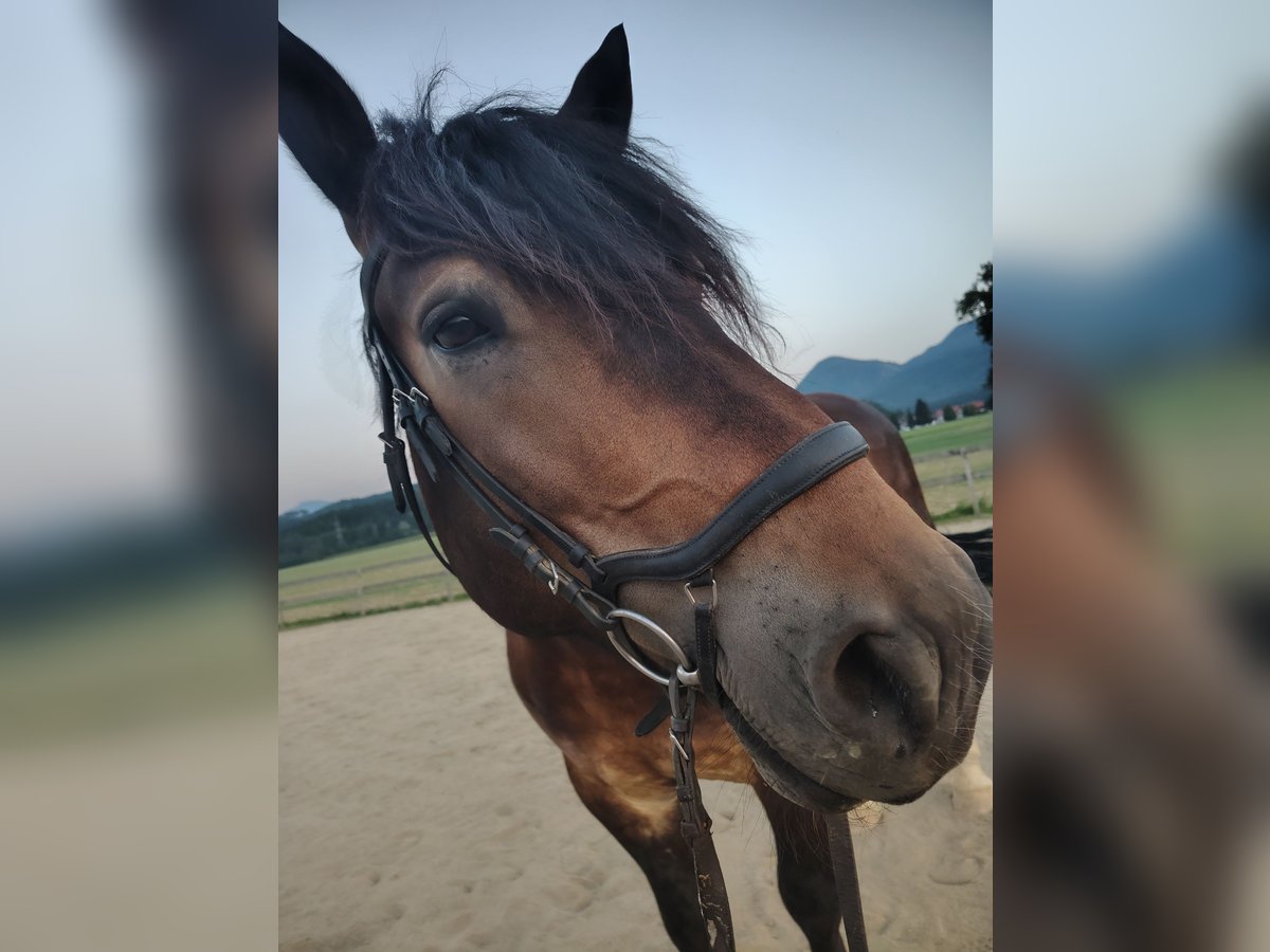 Pedro wird am 20.05. 7 Jahre jung. Habe ihn angeritten mit 4,5 Jahren gekauft, wünsche mir mittlerweile aber etwas leichteres, deshalb würde ich gerne umsteigen auf ein Warmblut. Momentan ist er auf einem soliden A-Niveau unterwegs. Er kennt freilaufende Hunde, beim Ausreiten mitlaufende Hunde, straßenverkehr ist er gewöhnt. Aber schnelle von hinten kommende Autos mag er nicht immer. Er ist ein kopfklarer Kerl, mit dem Ausreiten richtig Spass macht. Momentan ist er in der Nacht in der Box, bis vor einem Jahr war er in einem Offenstall zuhause. Er kennt Spaziergänge mit Kindern, wurde mit Kindern longiert ...und er passt immer gut auf, auf seine Passagiere. Er springt auch sehr gerne, im letzten Jahr hatte ich aber weniger Möglichkeiten dafür. Er wird aber mind. 2x im Monat mit Dressur Training gymnastiziert. Kann Seitengänge, reagiert sehr fein auf die Hilfen und möchte gefallen. Er geht in der Gruppe in jeder Position, aber am meisten sind wir momentan alleine unterwegs. Er hatte noch nie einen Beschlag, wir waren aber schon über 20 km beim Ausreiten unterwegs. Er ist sehr vielseitig einsetzbar. Weiters hat er eine wunderschöne Farbe...im Winter eher dunkel - im Sommer sieht er zum Teil richtig schön - fast buckskin Farben aus. Er wird regelmäßig dem Schmied vorgestellt. Zähne wurden im September gemacht. Näheres gerne per pn