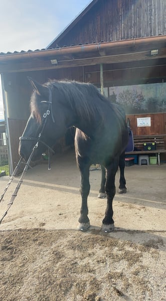 Noriker Gelding – Perfect for Leisure Riding! We are offering a beautiful black Noriker gelding, born in 2017. The impressive stallion impresses with his friendly temperament and striking appearance. Standing approximately 173 cm (17.1 hh), he offers a commanding presence that delights both in the field and during leisure rides. Elliano is healthy, well-trained, and ideally suited for recreational riding. His calm demeanor makes him the perfect companion for relaxed outings and enjoyable time in the saddle. Please feel free to contact me for more information or if you are interested. A personal meeting can be arranged by appointment!