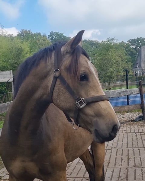 Se vende dulce pony castrado de 3 años. Don Diablo aún no ha sido educado y está listo para comenzar su formación. En este momento mide 1.36 y aún está en crecimiento. Debido a su carácter amable y confiable, será un pony muy adecuado para niños y un verdadero atractivo por su hermoso color bayo. Para más información, por favor envíe un correo electrónico o un mensaje al 0031646291752.