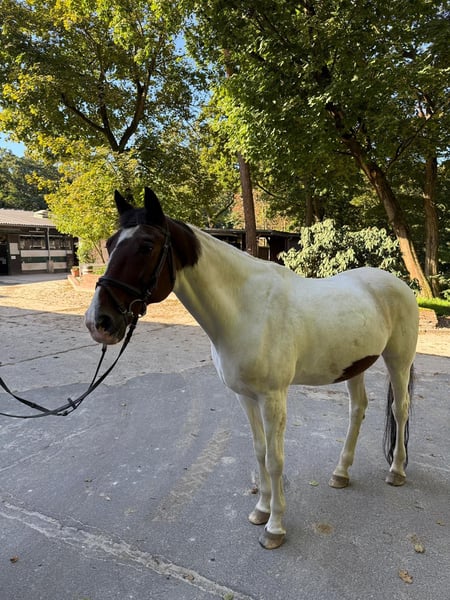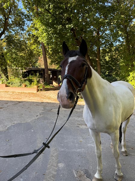 Wunderschöner Schecken-Wallach sucht neues Zuhause Zum Verkauf steht ein liebevoller und vielseitiger Wallach aus der Ukraine. **Merkmale:** - **Rasse:** Ukrainer - **Geschlecht:** Wallach - **Geburtsjahr:** 2007 - **Fellfarbe:** Schecke - **Stockmaß:** 163 cm Dieser charmante Wallach eignet sich hervorragend für die Freizeitgestaltung. Er ist brav im Umgang und hat ein freundliches Wesen, das ihn zu einem idealen Partner für Ausritte und entspannte Stunden im Gelände macht. Er ist gut ausgebildet und hat bereits Erfahrung in der Freizeit- und Geländereiterei. Auch für weniger erfahrene Reiter ist er gut geeignet, da er ein angenehmes Temperament hat und stets zuverlässig ist. Besonder für Kinder ist er ein treuer Begleiter. Biskvit kommt aus dem Schulbetrieb, ist also den Umgang mit vielen Personen, auch Kindern gewöhnt. Der Wallach ist entspr. seinem Alter gesund, regelmäßig geimpft und entwurmt. Wenn Sie auf der Suche nach einem treuen Begleiter für entspannte Ausritte und schöne Momente in der Natur sind, dann ist dieser Schecke genau das Richtige für Sie! Bei Interesse oder weiteren Fragen melden Sie sich gerne. Wir freuen uns auf Ihre Nachricht!