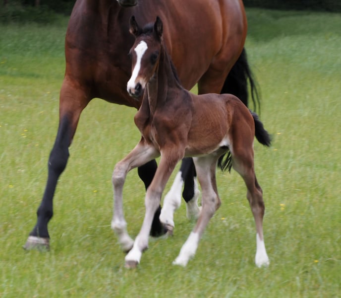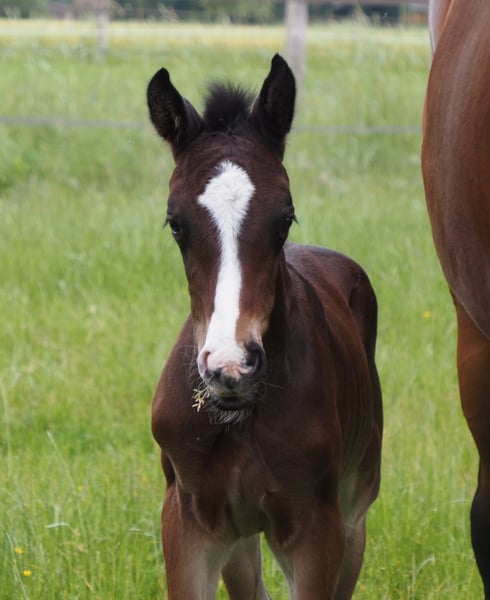 Ein Ebenbild seines erfolgreichen Vaters! Buntes doppelveranlagtes und ebenso schickes Hengstfohlen für alle Sparten. Durch den typisch kopfklaren und ausgeglichenen Charakter, der für die Cafe au lait Linie kennzeichnend ist, wird auch dieses Nachwuchspferd für Profis, Amateure und schwächere Reiter gleichermaßen ein toller Partner für Sport oder Freizeit! Aus dem zweiten Jahrgang unseres Nachwuchshengstes "Cafe's Don Rubin", der bereits 3jährig auf seiner HLP als absolut jüngstes Pferd zu überzeugen wusste! Erst im August geboren, glänzte er trotz einem Altersrückstand von einem halben Jahr gegenüber vielen anderen 3jährigen durch seine Coolness, Leichtrittigkeit und positive Arbeitseinstellung. Im letzten Jahr 4jährig bei seinem dritten Turnier Springpferde A gewonnen und als einziger 4jähriger gegen 5 und 6jährige mit 8er Noten hoch platziert! Danach gewann er Bronze im Finale des Dobrocker Deister Springpferdechampionat in seiner ersten Springpferde-L überhaupt!! Anschließend Springpferde L ebenfalls siegreich. Inzwischen Springpferde M platziert und qualifiziert zum Bundeschampionat. Parallel fungiert er trotz seines jungen Alters auch als Kinderlehrpferd für unsere 8jährige Tochter und absolviert problemlos mit 12jährigen Jungen E-Springen. Er überzeugt auf ganzer Linie durch Qualität, In- und Exterieur gleichermaßen! Begeistert täglich auf's Neue durch seine Rittigkeit, Lern- und Leistungsbereitschaft, dabei stets ausgeglichen und abgeklärt wie ein alter Hase. Auch im Gelände ein Traum! Absolut keine Hengstmanieren trotz Deckeinsatz. Unsere Fohlen bekommen täglich Mineralfutter und Fohlenstarter, regelmäßig EQUISTRO Haemolytan und Ipaligo Foal, Wurmkuren und Schmied sind natürlich ebenfalls selbstverständlich. Auch die Muttertiere bekommen die ganze Trächtigkeit hindurch spezielles Stutenfutter, täglich Saftfutter und Leinöl, sowie Heu ad libitum. So ist unsere Nachzucht stets im besten Gesundheitszustand. Weitere Fohlen und Nachwuchspferde aus eigener Zucht auf Anfrage. Es stehen auch immer wieder einige tragende Zuchtstuten zum Verkauf. Videoanfragen etc. ausschließlich vorab über WhatsApp möglich!