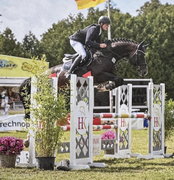 Een evenbeeld van zijn succesvolle vader! Kleurige, dubbelbelaste en even stijlvolle hengstveulen voor alle takken van sport. Door het typisch heldere en evenwichtige karakter, dat kenmerkend is voor de Cafe au lait-lijn, zal ook dit jonge paard een geweldige partner zijn voor zowel professionals als amateurs en minder sterke ruiters, zowel in de sport als in de vrije tijd! Uit het tweede jaar van onze jonge hengst "Cafe's Don Rubin", die al op zijn HLP als absoluut jongste paard op driejarige leeftijd wist te overtuigen! Pas in augustus geboren, schitterde hij ondanks een leeftijdsachterstand van een half jaar ten opzichte van veel andere driejarige paarden door zijn koelheid, lichtheid in de mond en positieve werkhouding. Vorig jaar won hij op vierjarige leeftijd zijn derde wedstrijd in de klasse Springpaarden A en werd als enige vierjarige hoog geplaatst tegen vijf- en zesjarige paarden met 8-punten! Daarna won hij brons in de finale van het Dobrocker Deister Springpaardenkampioenschap in zijn eerste Springpaarden-L ooit!! Vervolgens ook succesvol in de Springpaarden L. Tegelijkertijd fungeert hij ondanks zijn jonge leeftijd ook als leerpaard voor kinderen en volbrengt probleemloos E-springen met een 12-jarige jongen. Hij overtuigt op alle fronten door kwaliteit, zowel in- als exterieur! Verblijdt dagelijks opnieuw door zijn rijdbaarheid, leergierigheid en prestatiedrang, altijd evenwichtig en kalm als een oude rot. Ook in het terrein een droom! Absoluut geen hengstmanieren ondanks de deken. Onze veulens krijgen dagelijks mineralenvoeding en veulenstarter, regelmatig EQUISTRO Haemolytan en Ipaligo Foal, ontwormingen en hoefsmid zijn natuurlijk ook vanzelfsprekend. Ook de moederdieren krijgen gedurende de hele dracht speciaal merrievoeder, dagelijks sappig voer en lijnzaadolie, evenals hooi ad libitum. Zo is onze fokkerij altijd in de beste gezondheidstoestand. Meer veulens en jonge paarden uit eigen fokkerij op aanvraag. Er staan ook regelmatig enkele drachtige fokmerries te koop. Video-aanvragen etc. uitsluitend vooraf via WhatsApp mogelijk!