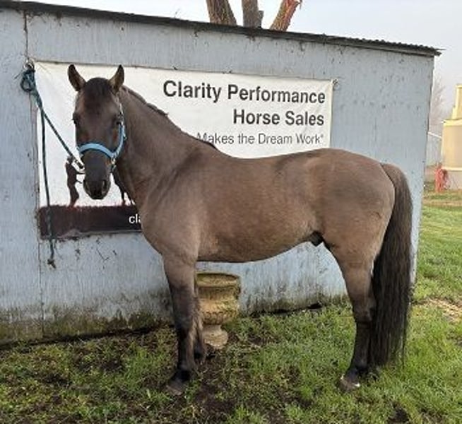 Rubikhan is THE ONLY Grulla, small, Registered Warmblood stallion IN THE USA! He is a gem of all gems. 100% unique. One of a kind. ------------------ Proudly Presented by, and in full training to sell with- Clare and Clarity Performance Horse Sales: "Real Steel Rubikhan": 5 year old, 14.2hh, Grullo, Sulphur Horse/Oldenburg, registered and branded International Sporthorse Registry (ISR) Stallion How exciting is this boy! Rubikhan is like a custom painted Lamborghini. He is small and sleek, flashy and fancy! Only one owner! Born and raised in Sonoma County, Ca. And perhaps best of all: he is extraordinarily sweet! Absolutely zero aggressiveness! He is a doll! Rubikhan was ground trained, and correctly prepared to be ridden. He then hung out in pasture with his guy buddies until now. Owner selling due to life challenges and changes. Rubikhan is a good mover, with an especially wonderful canter. He could excel in any of the Performance Horse Disciplines. He will also be marvelous for Western Dressage, Working Equitation, and any of the Trail Versatility/Suitability/Competitive fields. He is very bold, so he should be great on the Trails as well. Completely and totally sound and healthy. Fantastic, black, 'hard as flint', barefoot feet. Clean legs. No history of health or soundness issues. Could be gelded or kept a stallion. Located at Clare's Training and Sale barn in Petaluma, Ca. Contact: Clare (707)338-2092 clarityperformancehorsesales@gmail.com https://sites.google.com/site/clarityperformancehorsesales/free-rescue-re-home-horses?authuser=0