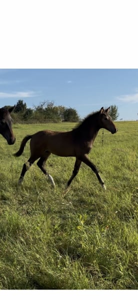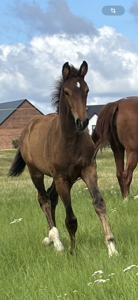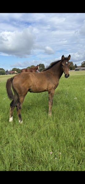Zum Verkauf steht ein vielversprechender Oldenburger Hengst, geboren im Jahr 2025. Mit einem vermutlichen Endstockmaß über 170 cm und seiner beeindruckenden braunen Fellfarbe zieht er alle Blicke auf sich. Er hat kräftige Beine und Gelenke. Ist aufgeweckt und springt und tobt gerne über die Koppel. Er freut sich wenn sich jemand mit ihm beschäftigt und kommt auch selbstständig über die ganze Koppel auf einen zu gelaufen. Dieser talentierte Hengst zeigt großes Potenzial im Springen und wird sicherlich die Herausforderungen im Parcours annehmen können. Sein freundliches Wesen und seine Lernbereitschaft machen ihn zu einem idealen Partner für ambitionierte Reiter. Er ist gut erzogen und sehr umgänglich in Alltagssituationen. Auf der Fohlenschau konnte er die Richter von sich begeistern und erhielt den Status Elitefohlen. Auch hier zeigte er sich sehr umgänglich. Er ist neugierig und erkundet neue Objekte gerne. Er war am 05.07.2025 in BonHomme bei der Fohlenschau gerade mal einen Monat alt und hat den 2. Platz der Oldenburger Springpferdefohlen geschafft. Der Vater Nairobi de Muze ist international erfolgreich. Die Mutter C-Falanda aus der königlichen Warmblutzucht der Niederlande stammende Tochter des Campell VDL, Voltaire und Lord Calando Direkte Halbbruder zu Karlanda N v. Zavall VDL international in der Schweren Klasse erfolgreich unterwegs ist. Wertenoten: Bewegung 8,5 Typ 9,0 Exterieur 8,6 Bei Interesse oder weiteren Fragen stehe ich Ihnen gerne zur Verfügung. Besuchen Sie uns und überzeugen Sie sich selbst von diesem außergewöhnlichen Pferd!