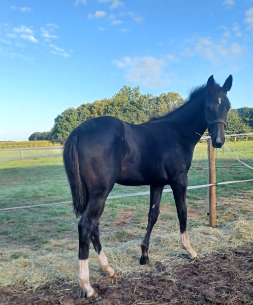 Dieses Fohlen zeigt bereits jetzt überragende Grundgangarten mit viel Schwung und Takt. Diese Fohlen vereint die besten Blutlinien für den Dressursport und besticht durch seinen korrekten Körperbau. Vater Escaneno ist ein gefeierter Prämienhengst, der für seine überragenden Bewegungsqualitäten und Rittigkeit bekannt ist. Er gibt diese Qualitäten an seine Nachkommen weiter. Er hatte sich auch für die Weltmeisterschaft der jungen Dressurpferde in Verden qualifiziert. Die Mutter Beauty stammt aus einer Züchtung die mehrere Auktionsfohlen hervorgebracht hat. Die Großmutter Baroness brachte nicht nur Beauty hervor sondern auch Quadiro. Er ist bereits S*** erfolgreich im Dressursport unterwegs. Video auf Anfrage