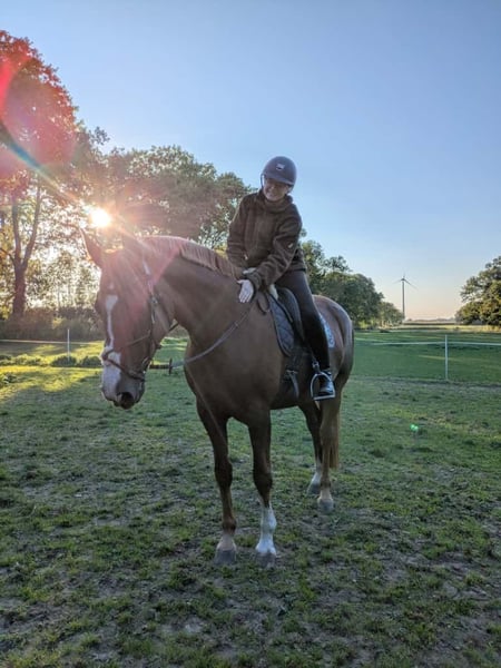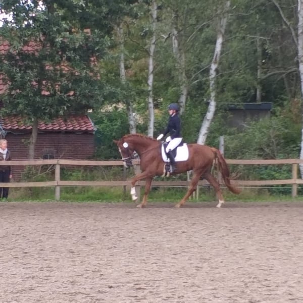 Vendita a causa di mancanza di tempo dovuta a gravidanza e bebé. Goldika è una dolce fattrice. Attualmente si trova in un paddock con un piccolo gruppo di cavalli e durante l'estate sta in paddock 24/7. Tuttavia, conosce anche il box. Ha esperienza nel salto e nel cross, anche se recentemente è stata principalmente impegnata in dressage o portata a passeggio. Va tranquillamente da sola o in gruppo in passeggiata in campagna. È tranquilla dal ferratore e si lascia caricare senza problemi sul carro. Attualmente viene montata saltuariamente, ma si comporta sempre bene.