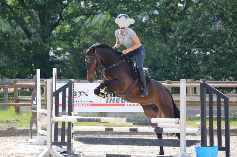 For sale is this Oldenburg mare sired by Kardinal (Krack C). She performs all movements up to medium level and has an excellent jump. She also jumps small courses with a child, always eager to work and forgiving of mistakes. She enjoys hacking out and is easy to ride even in unfamiliar surroundings. The mare is very people-oriented. Currently, she is turned out daily with four other mares and gets along very well with them. If interested, please contact: 0173 2035519.