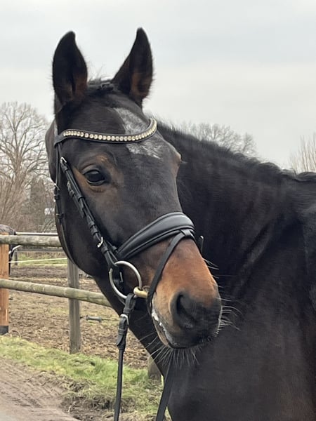 Zum Verkauf steht diese oldenburger Stute v. Kardinal (Krack C). Sie geht alle Lektionen bis M und macht einen hervorragenden Sprung. Springt auch mit einem Kind einen kleinen Parcours, zeigt sich stets leistungsbereit und verzeiht auch Fehler. Sie geht gerne ins Gelände und lässt sich auch in ungewohnter Umgebung schön reiten. Die Stute ist sehr menschenbezogen. Zur Zeit geht sie täglich mit vier weiteren Stuten auf die Koppel und zeigt sich hier sehr kompatibel. Da die kürzlich durchgeführte AKU einige Befunde ergab, wird sie nun unter Wert verkauft. Bei Interesse gerne melden unter: 0173 2035519.