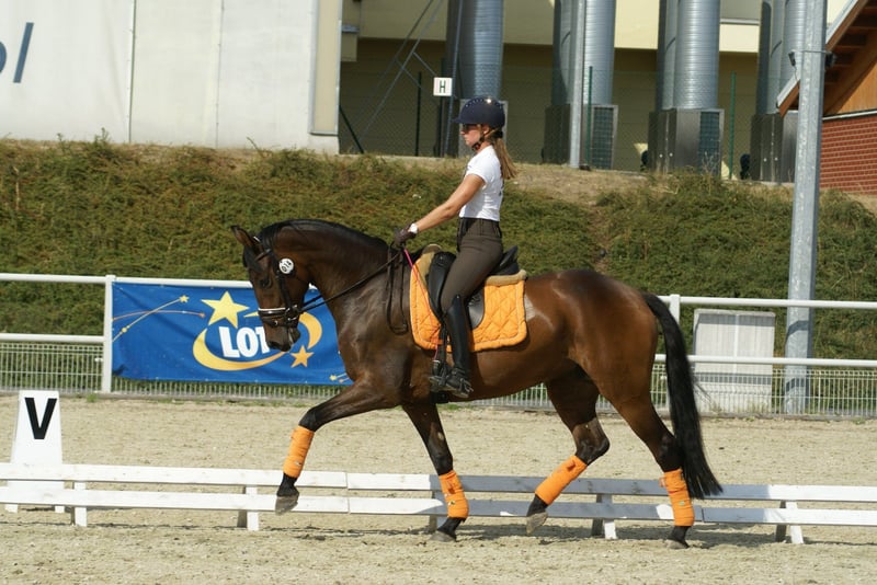 Mare is prepared to Inter I level also she started one tempie changes. It is a beautiful horse with excellent paces. Suitable also for younger riders: children, juniors, young riders. She is a lovely and dear horse. She has never had an injury or contusion. Mare is energetic, she is not a lazy horse, but still very safe.