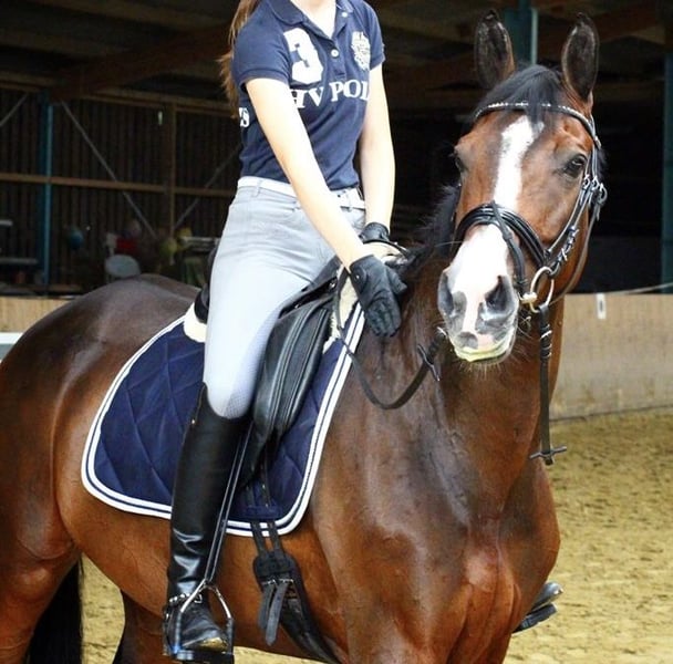 Lola ist eine 12-jährige Dressurstute, abstammend von Lingh aus einer Carabas-Mutter. Sie ist angenehm zu reiten, sehr leicht in der Anlehnung und verfügt über ein natürliches Go. Lola war bis zur Dressur Klasse L erfolgreich im Turniersport platziert. Aufgrund ihrer Sensibilität und Stressanfälligkeit soll sie nun nicht mehr im Turniersport eingesetzt werden und sucht ein schönes neues Zuhause als zuverlässige Freizeitpartnerin. Sie braucht einen einfühlsamen Reiter, der ihr Sicherheit gibt, und ist daher nicht als reines Anfängerpferd geeignet. Unter einem ruhigen, erfahrenen Reiter ist sie jedoch eine wunderbare Partnerin. Aufgrund ihrer Abstammung ist sie auch für die Zucht interessant. Lola leidet unter einem Sommerekzem, das aber bei guter Pflege problemlos zu handhaben ist. Uns liegt sehr am Herzen, dass sie in ein liebevolles, verantwortungsbewusstes Zuhause kommt, in dem sie glücklich und gut aufgehoben ist. Aufgrund eines röntgenologischen Befunds wird sie weit unter Wert abgegeben. Um Reittourismus zu verhindern, erheben wir fürs Probereiten ein Betrag von 25 €. Dies wird beim Kauf natürlich erstattet.