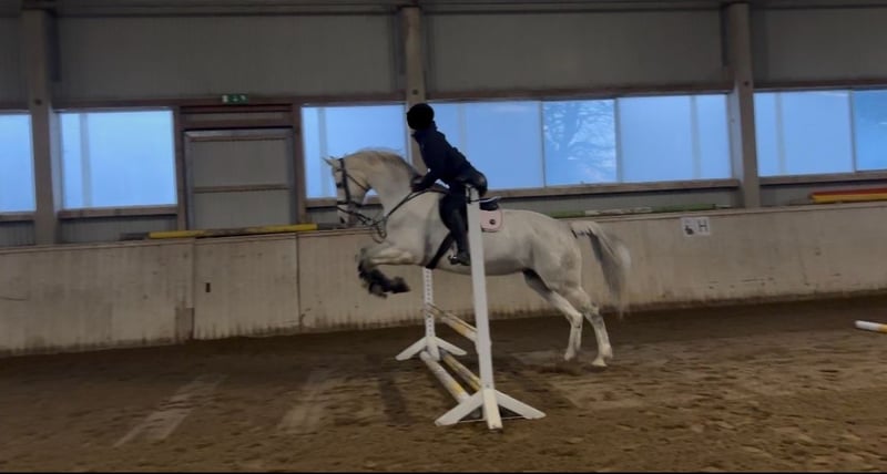 With a heavy heart, we are seeking a new home for our beloved mare, Amulett. Amulett is an Oldenburg show jumping horse, originally purchased for our daughter. Unfortunately, due to her academic commitments, she no longer has regular riding time, and so we have made the difficult decision to place Amulett in caring and capable hands. Amulett is a spirited, sensitive, and eager-to-learn mare who enjoys her work and can realize her full potential in the right environment. She is well-behaved, personable, and has a love for movement. We are looking for a home where she will be challenged and supported—whether in show jumping or as a reliable partner for leisure riding.