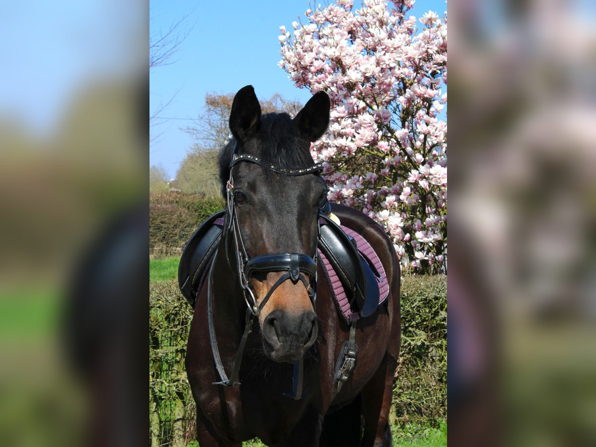 Diva ist eine Oldenburger Stute (geb. April 2012) und hat ein Stockmaß von ca. 1,80 m. Sie hat eine solide Grundausbildung, ist A-Springen sowie E-Dressur gelaufen. Aufgrund von zwei kleineren Befunden ist sie künftig eher im Freizeit- bzw. kleinen Turnierbereich zu sehen: vereinzelt Sprünge bis L-Höhe sind möglich, eine L-Dressur wird sie jedoch voraussichtlich nicht laufen können. Diva ist ein echtes Verlasspferd mit Herz – ihr Charakter ist Gold wert, im Umgang macht sie wirklich alles mit. Sie hat jedoch guten Zug nach vorn und ist daher nicht für Anfänger oder Kinder geeignet. Abstammung: Don Romantic x Hotline – ggf. auch interessant für die Zucht. Preisvorstellung: 4.500,00€ VB – hier gilt aber Platz vor Preis.