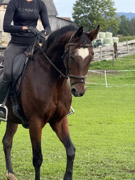 Super liebe Stute Mausi ist eine tolle 14 jährige Stute die ca 165cm groß ist. Sie stammt von Sir Donnerhall 1 - Locksley ab. Die Stute war auch Landessieger Stute und hatte schon Fohlen, daher auch als Zuchtstute interessant. Sie ist absolut gesund und super brav und unkompliziert im Umgang. Mausi so wie sie bei uns genannt wird ist sehr schön dressurmäßig zu reiten und hier auf A Niveau. Sie macht brav kleine Sprünge und ist unkompliziert und brav beim Ausreiten. Schmiede und Verladefromm.