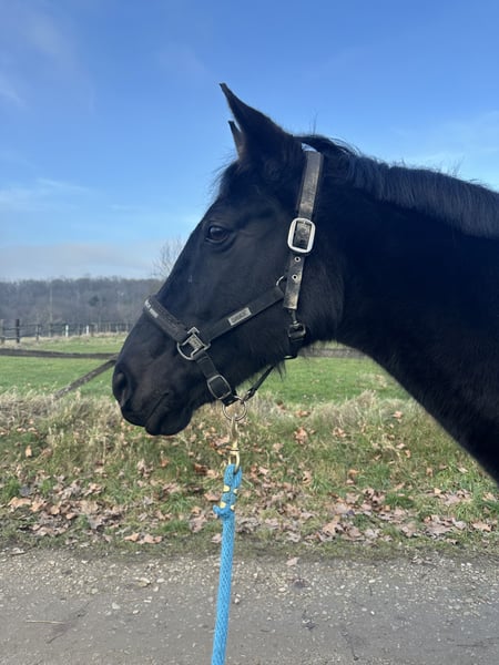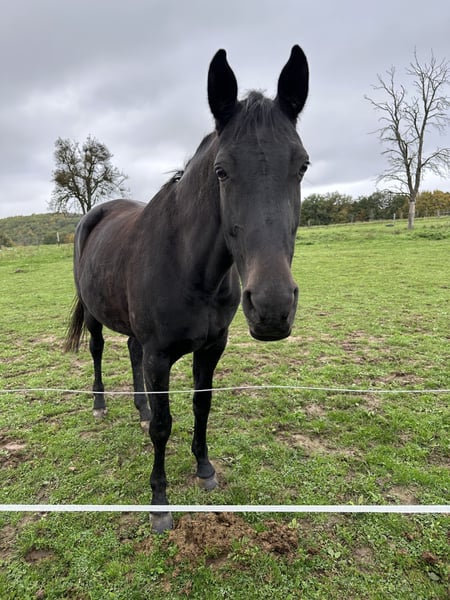 Schweren Herzens suche ich für meine 15-jährige Oldenburger Stute ein neues, passendes Zuhause. Sie ist ein absolutes Herzenspferd mit einem außergewöhnlich lieben und menschenbezogenen Charakter. In dem letzten Jahr wurde sie überwiegend im Gelände geritten, unter anderem auch auf Wanderritten. Bei ihrer Vorbesitzerin war sie zudem erfolgreich auf Turnieren unterwegs. Im vergangenen Jahr hatte sie eine Verletzung (angerissenes Band im Sprunggelenk sowie eine Knochenabsplitterung). Diese ist jedoch vollständig ausgeheilt – laut Tierarzt ist sie wieder voll belastbar und zeigt aktuell keinerlei Probleme. Charakterlich überzeugt sie auf ganzer Linie: lieb, zuverlässig und sehr fein im Umgang. Hat man einmal ihr Vertrauen gewonnen, geht sie mit einem durch dick und dünn. Aktuell steht sie im Offenstall und kommt in einer kleinen Herde gut zurecht. Eine Haltung in der Box ist ebenfalls möglich, sofern sie ausreichend (!!) Auslauf und Weidegang erhält. Sie hatte bzw. hat Equines Asthma, zeigt aktuell jedoch kaum bis keine Symptome. Gelegentlich tritt leichter Husten auf, benötigt aber derzeit weder Zusatzfutter noch besonderes Management wie das Wässern von Heu. Aufgrund von Zeitmangel ist sie momentan nicht im Training, daher ist ein Probereiten aktuell leider nicht möglich. Sie ist sehr unkompliziert im täglichen Umgang, gut erzogen und insgesamt ein verlässlicher Partner für jemanden, der ein ehrliches Pferd mit tollem Charakter sucht. Auch als Zuchtstute kann ich sie mir durch ihr ausgeglichenes Wesen sehr gut vorstellen. Sie wird ausschließlich in ein passendes 5⭐️-Zuhause abgegeben.
