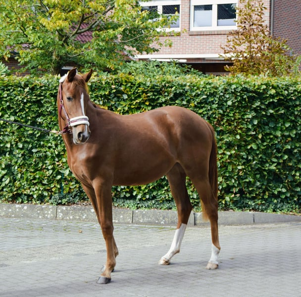 **Te koop: Droomachtige Oldenburger merrie te koop!** Wij bieden een veelbelovende Oldenburger merrie te koop aan, die in 2024 ter wereld is gekomen. **Kenmerken:** - **Ras:** Oldenburger - **Geslacht:** Merrie - **Geboortejaar:** 2024 - **Kleur:** Donker vos - **Schofthoogte:** momenteel 152 cm, zal ongeveer 165 cm worden - **Geschiktheid:** Springen en dressuur Deze getalenteerde merrie overtuigt niet alleen door haar aantrekkelijke postuur, maar ook door haar uitstekende potentieel. Ze heeft 3 goede basisgangen, waarbij de stap bijzonder opvalt. Wie op zoek is naar een betrouwbare partner voor recreatie of de wedstrijdsport, is hier absoluut aan het juiste adres. Ze heeft een droomachtig evenwichtig karakter, is absoluut helder van geest, maar toont zich desondanks zeker niet verlegen. Ze is bij mij geboren en geniet van een optimale opfok met alles wat daarbij hoort. Regelmatig ontwormd, bij de hoefsmid geweest en gevaccineerd. Bij interesse of verdere vragen horen wij graag van u!
